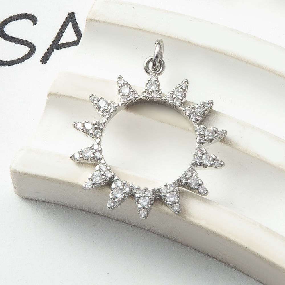 Kubiskt Zirconia hänge, Mässing, Sol, plated, mode smycken & micro bana cubic zirconia, silver, nickel, bly och kadmium gratis, 21.20x2.30x27.20mm, Säljs av PC