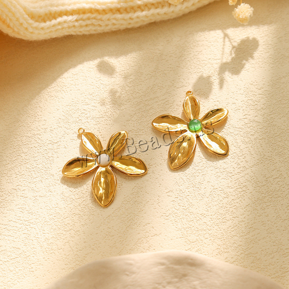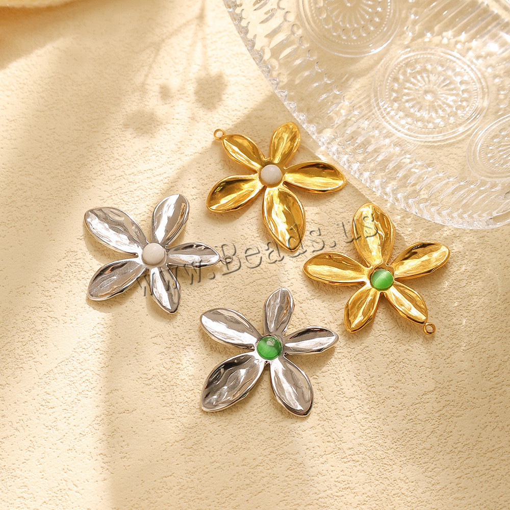 Cats Eye Häng, 304 rostfritt stål, med Cats Eye, Blomma, DIY, fler färger för val, 32x38mm, 10PC/Bag, Säljs av Bag