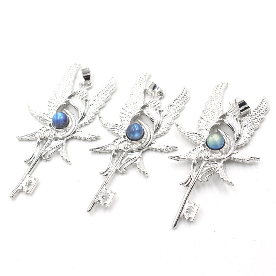 Zink Alloy Halsband, med Labradorit, silver pläterad, DIY, silver, nickel, bly och kadmium gratis, 33x60mm, Säljs av PC