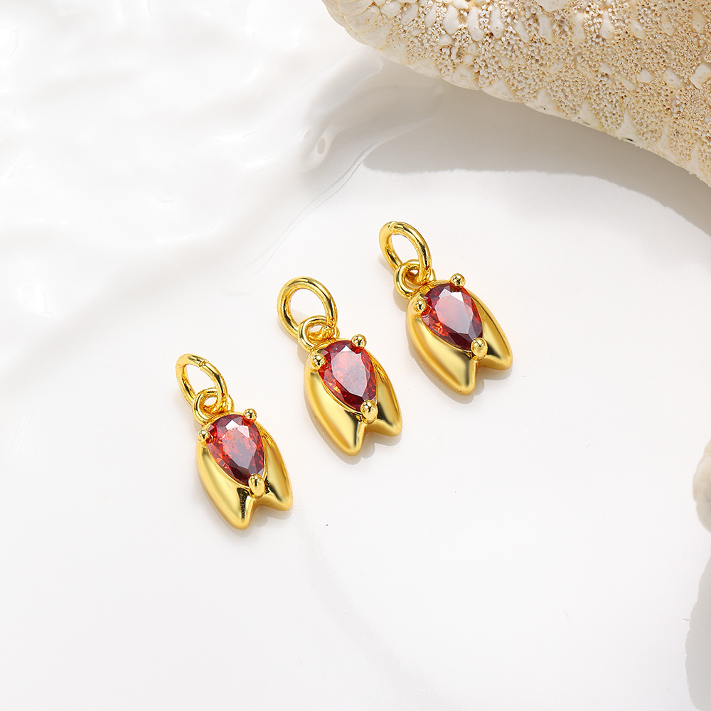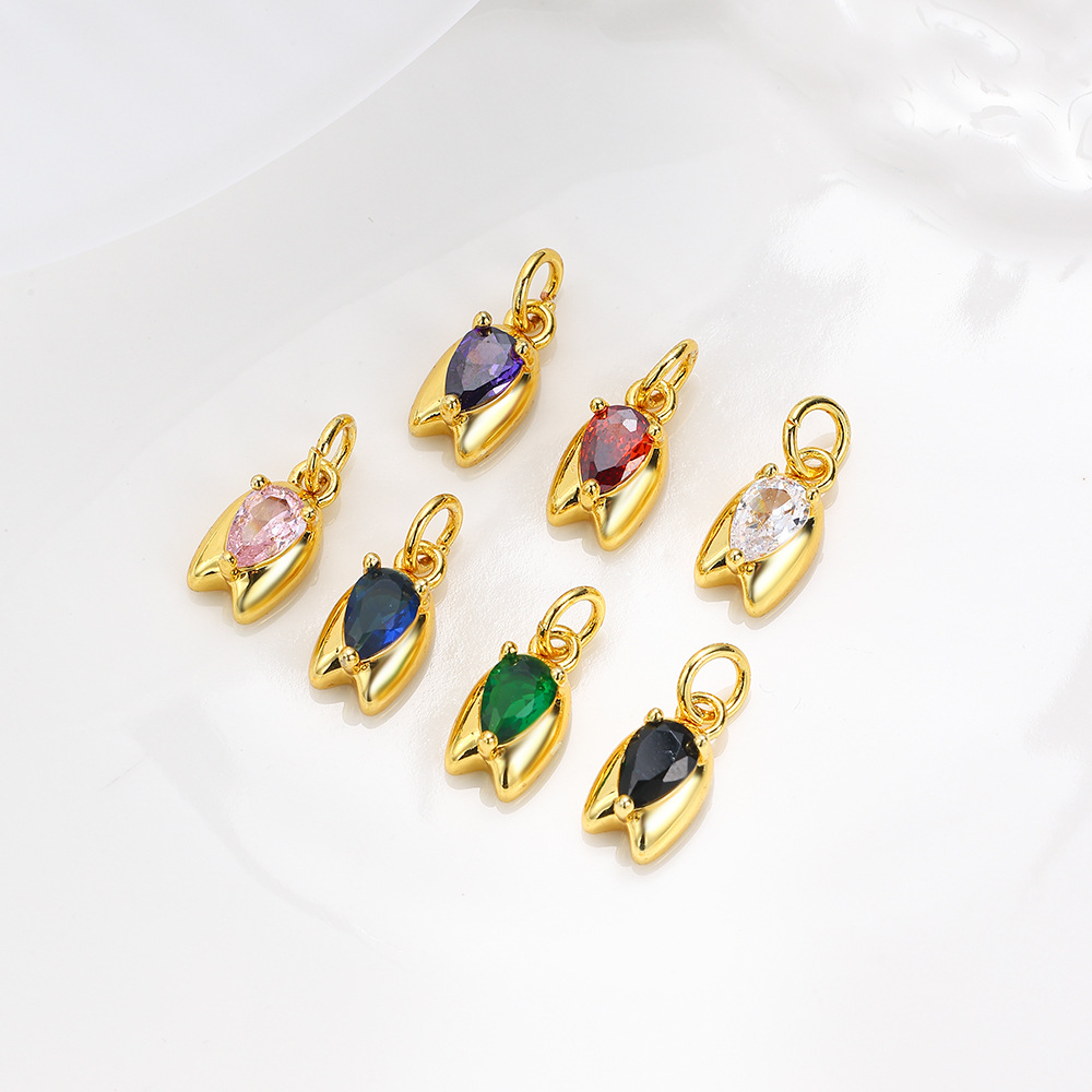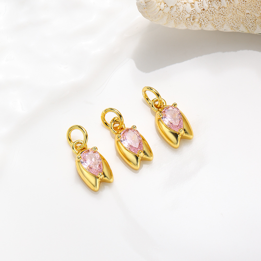 Cubic Zirconia (CZ) Brass Hängen, Mässing, med Cubic Zirconia, Tulip, guldfärg pläterade, DIY, fler färger för val, nickel, bly och kadmium gratis, 6x15mm, Säljs av PC