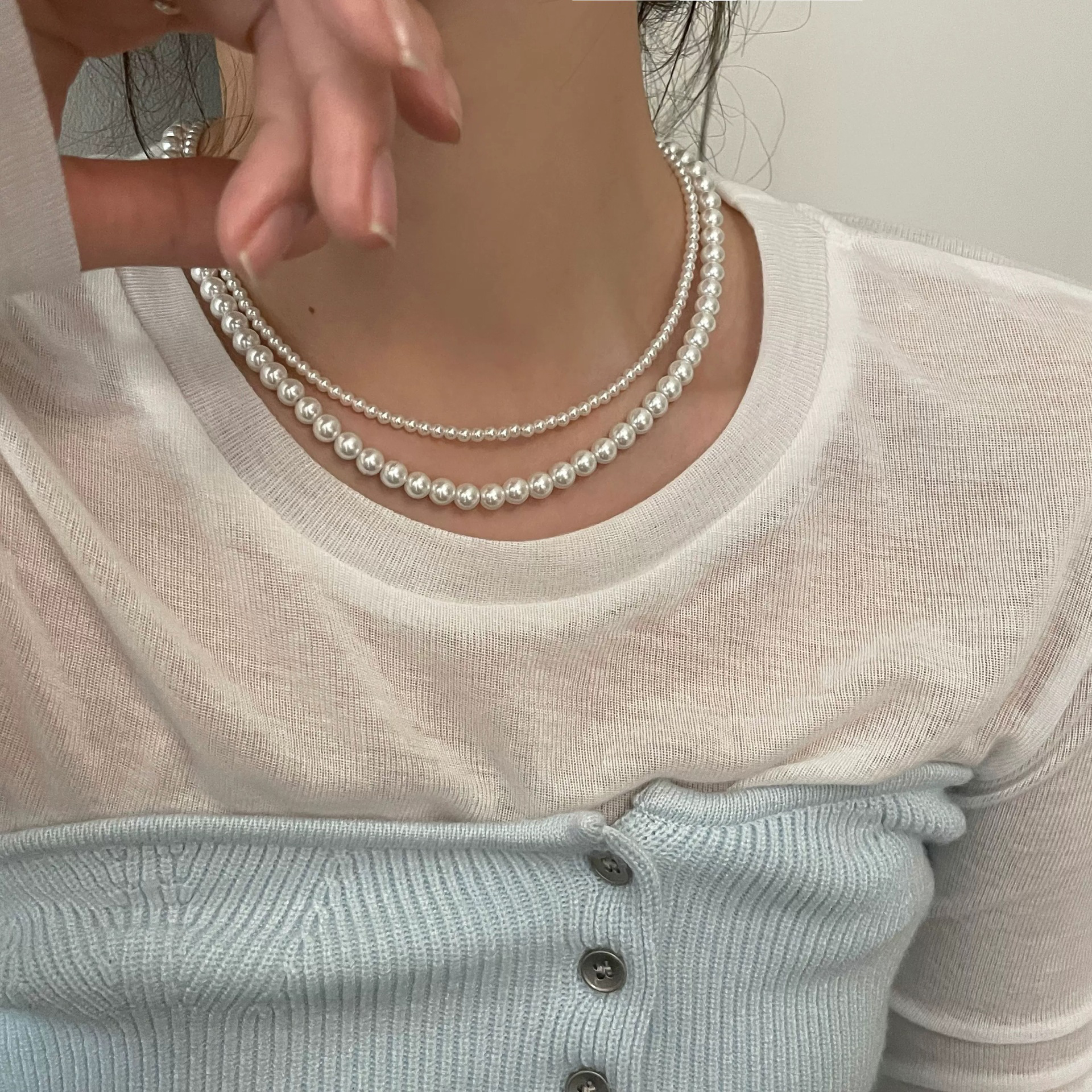 Plast pärlhalsband, Plast Pearl, med Titan Stål, handgjord, mode smycken & olika stilar för val & för kvinna, Längd 45 cm, Säljs av PC