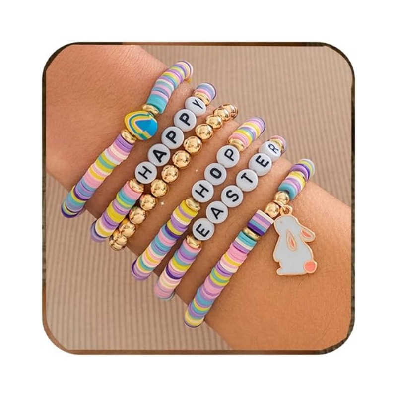 Polymer Clay Armband Set, med Glas & Zink Alloy, Kanin, handgjord, Unisex & olika stilar för val, Längd Ca 7 inch, Säljs av PC