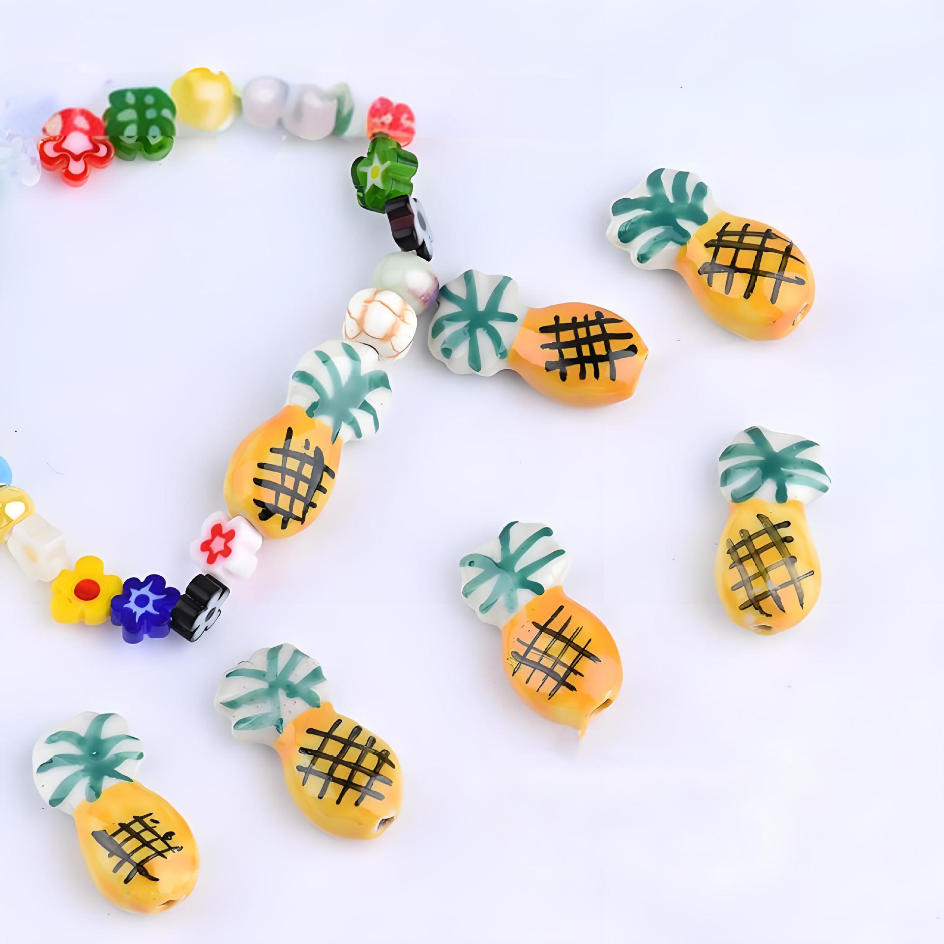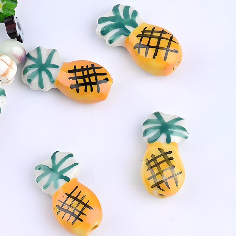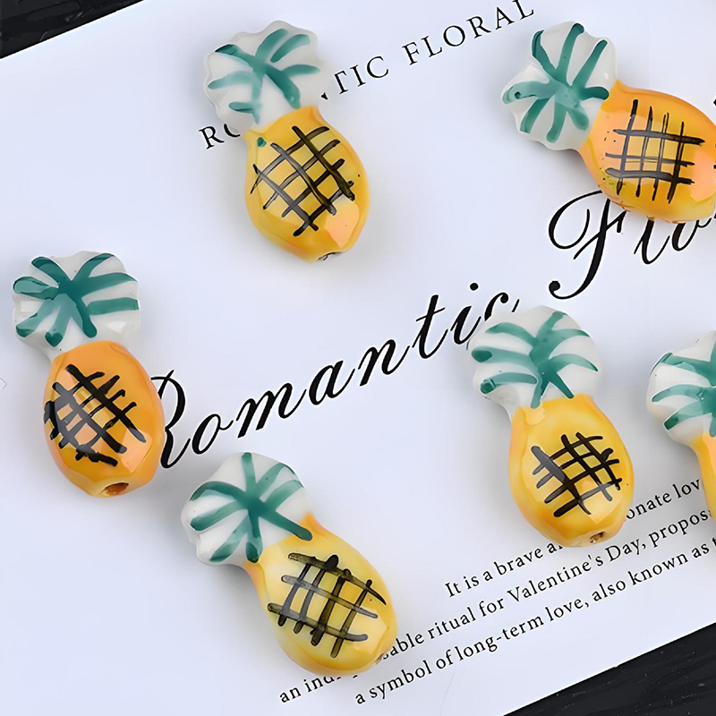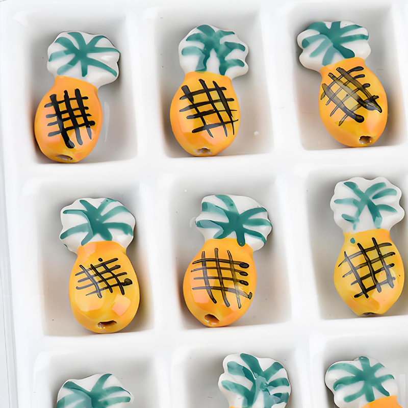 Porslin Smycken Pärlor, Ananas, hand ritning, DIY, 20x7mm, Hål:Ca 2mm, 100PC/Bag, Säljs av Bag