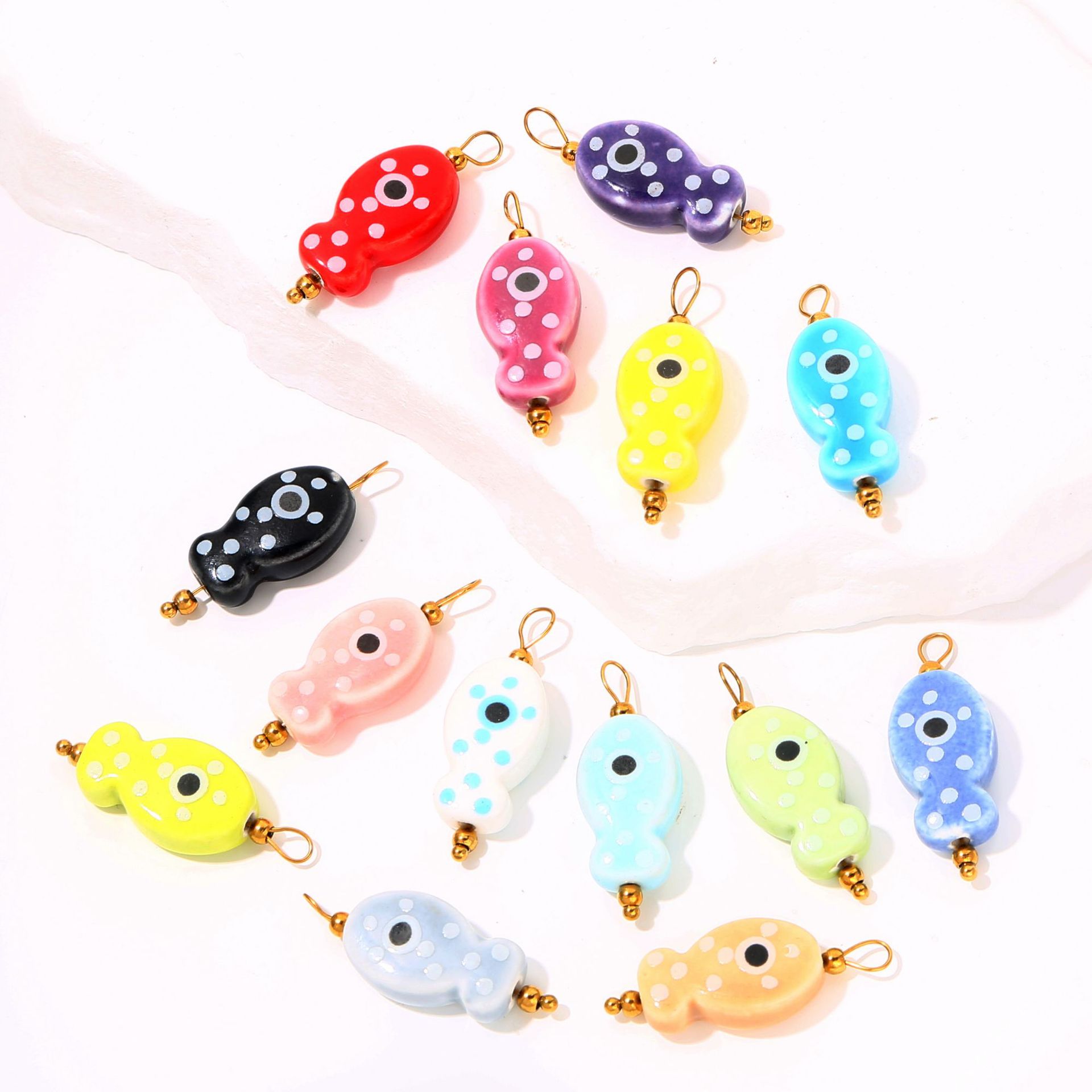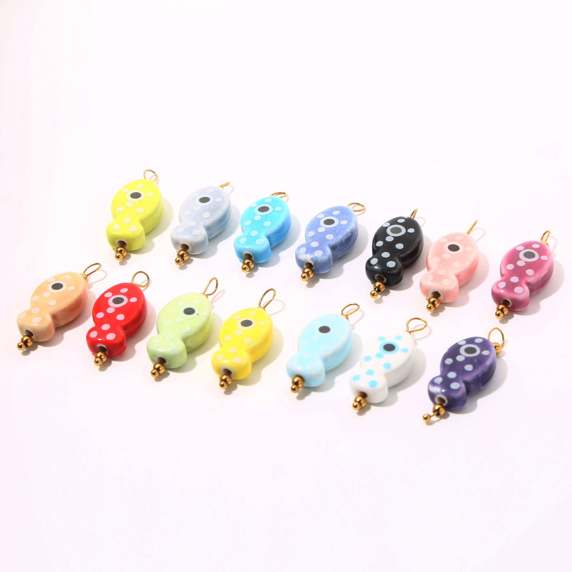 Porslin hängen, med 304 rostfritt stål, Fisk, guldfärg pläterade, DIY & emalj, fler färger för val, 10PC/Bag, Säljs av Bag