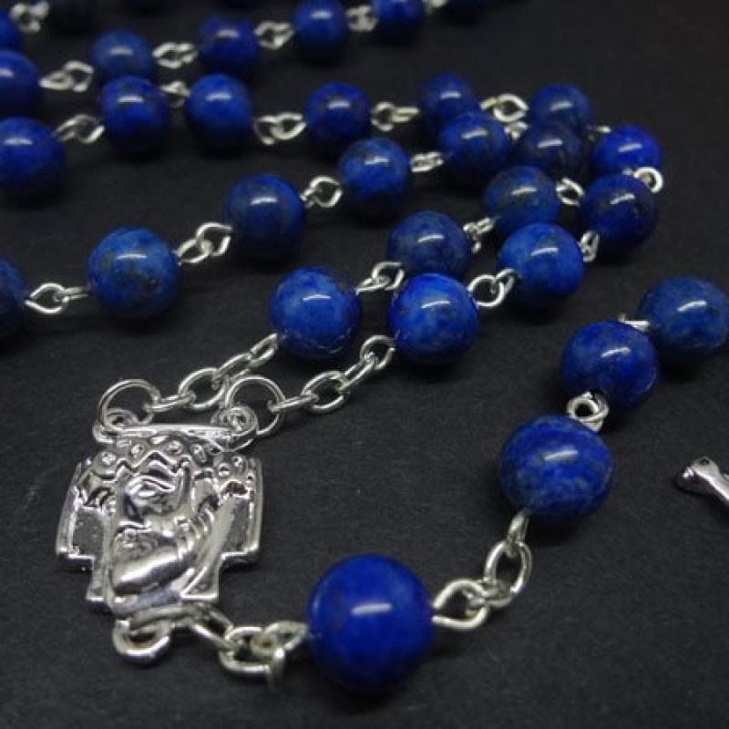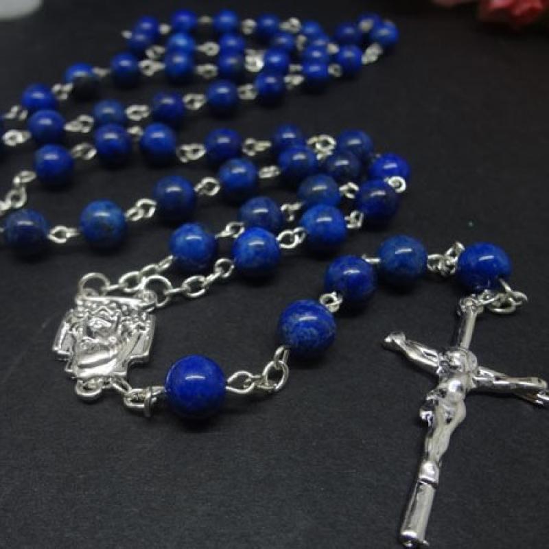Radband halsband, Zink Alloy, med Lapis lazuli, Cross, plated, mode smycken, blandade färger, 8mm, Längd 80 cm, Säljs av PC