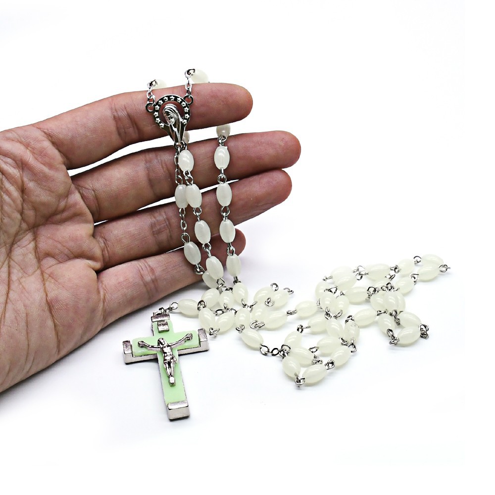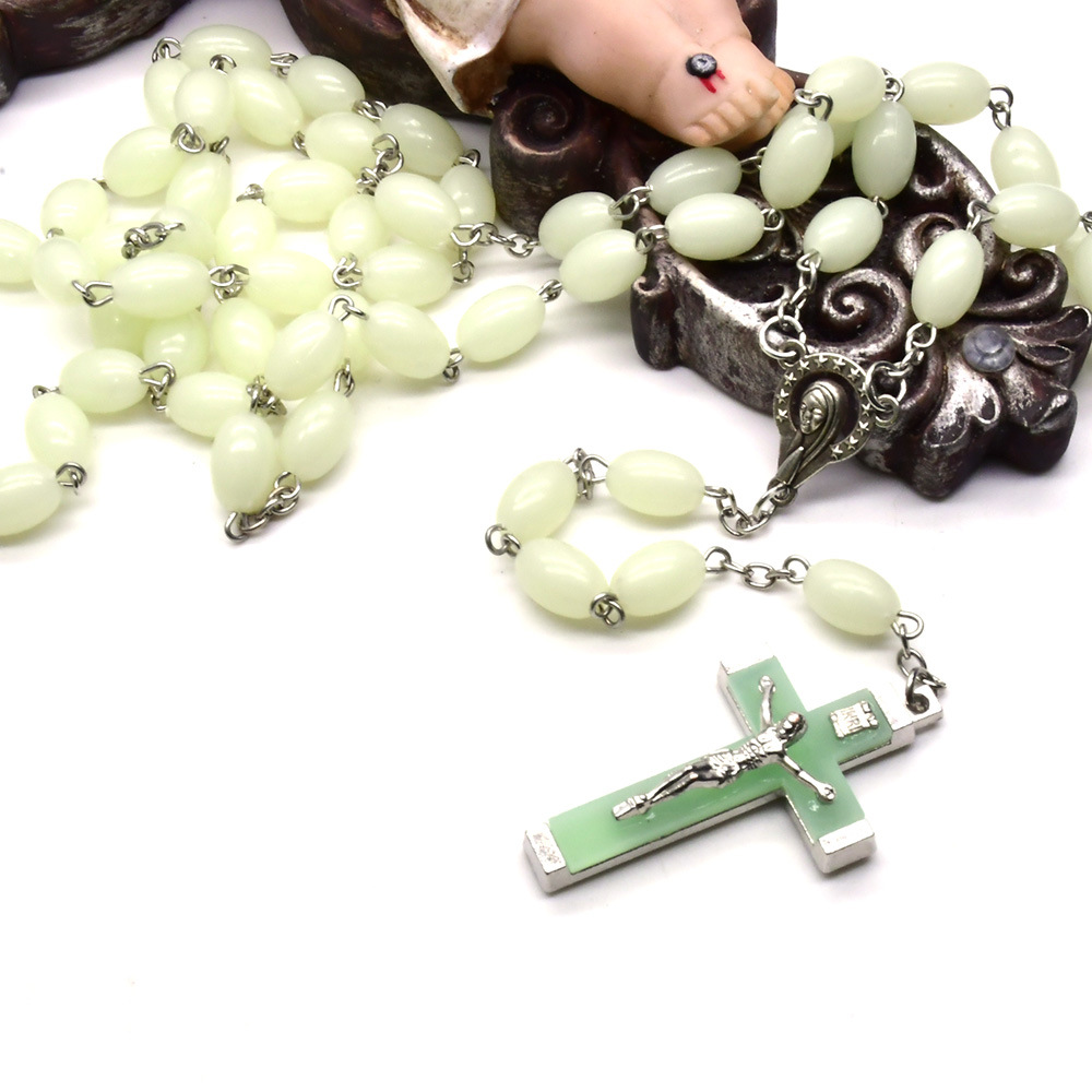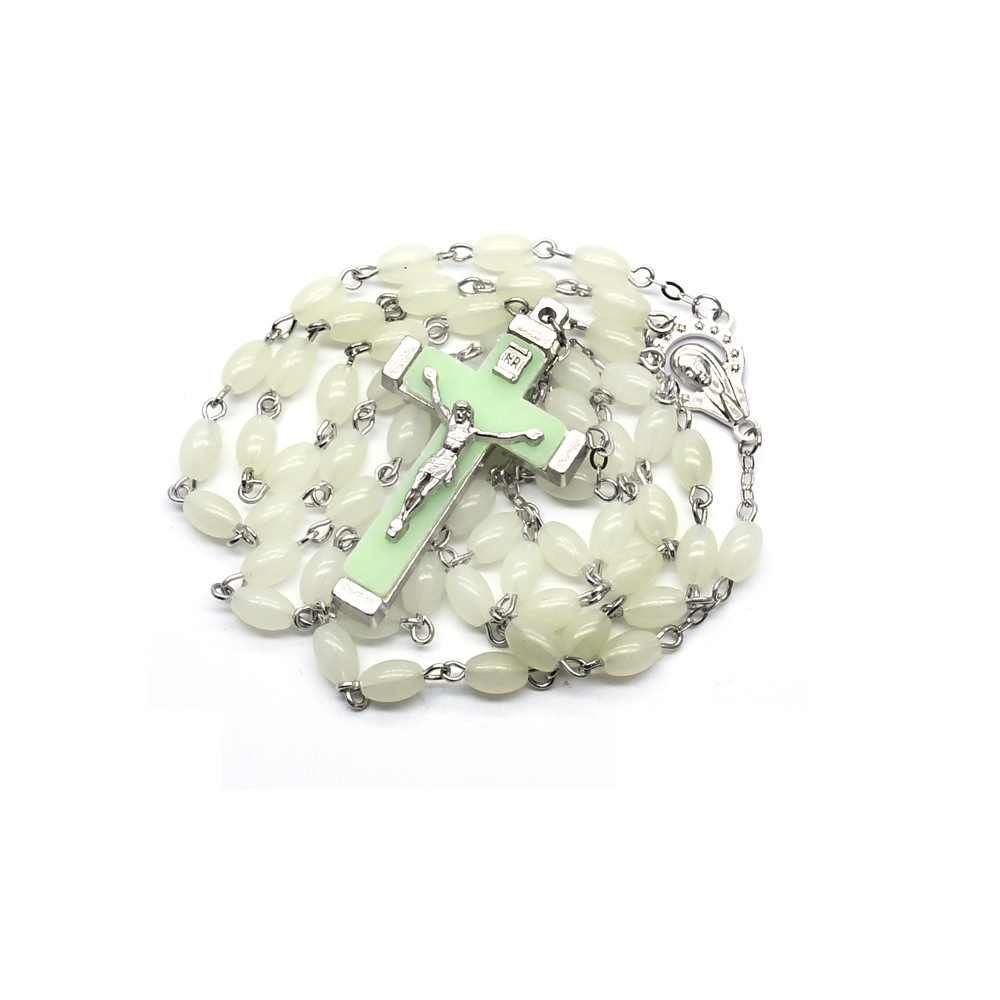 Radband halsband, Zink Alloy, med Plast, Cross, silver pläterad, mode smycken & luminated, blandade färger, 9x11mm, Säljs av PC