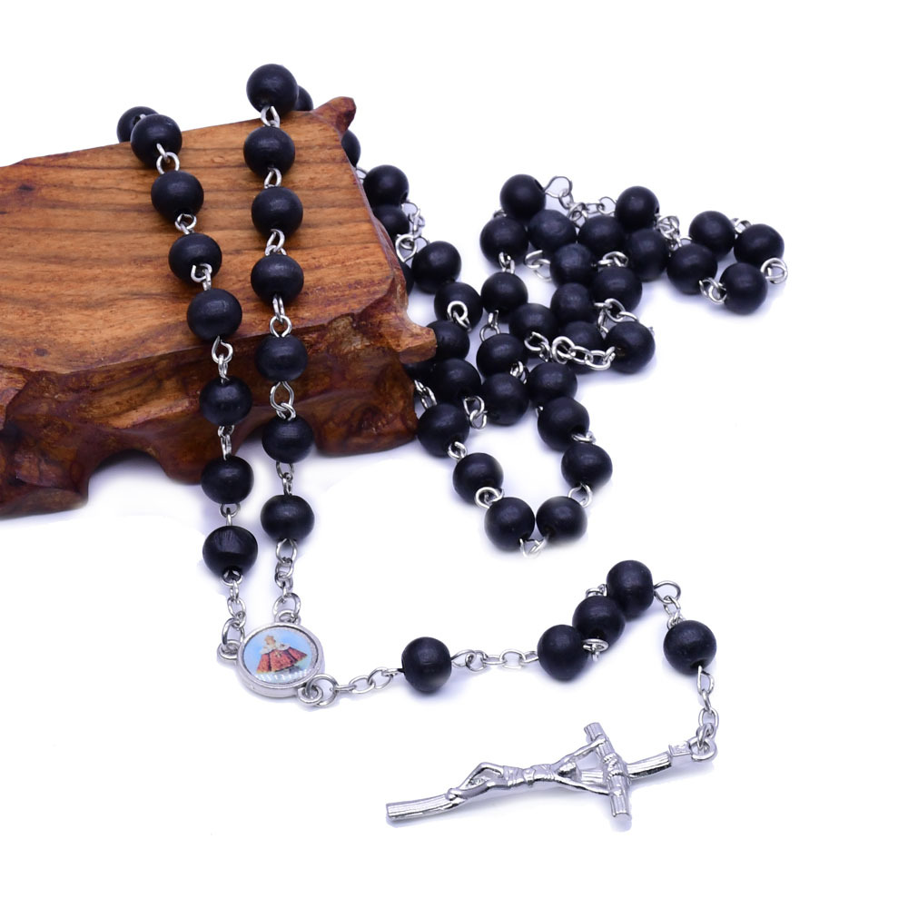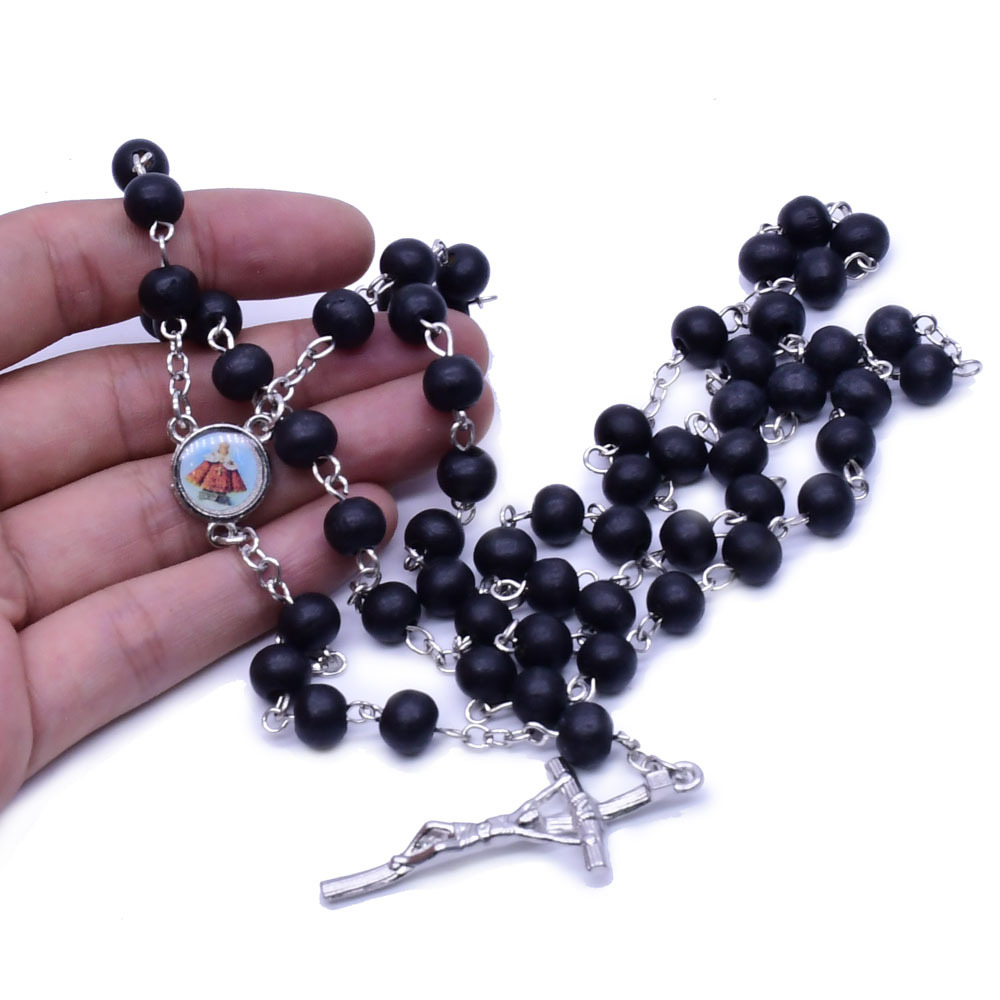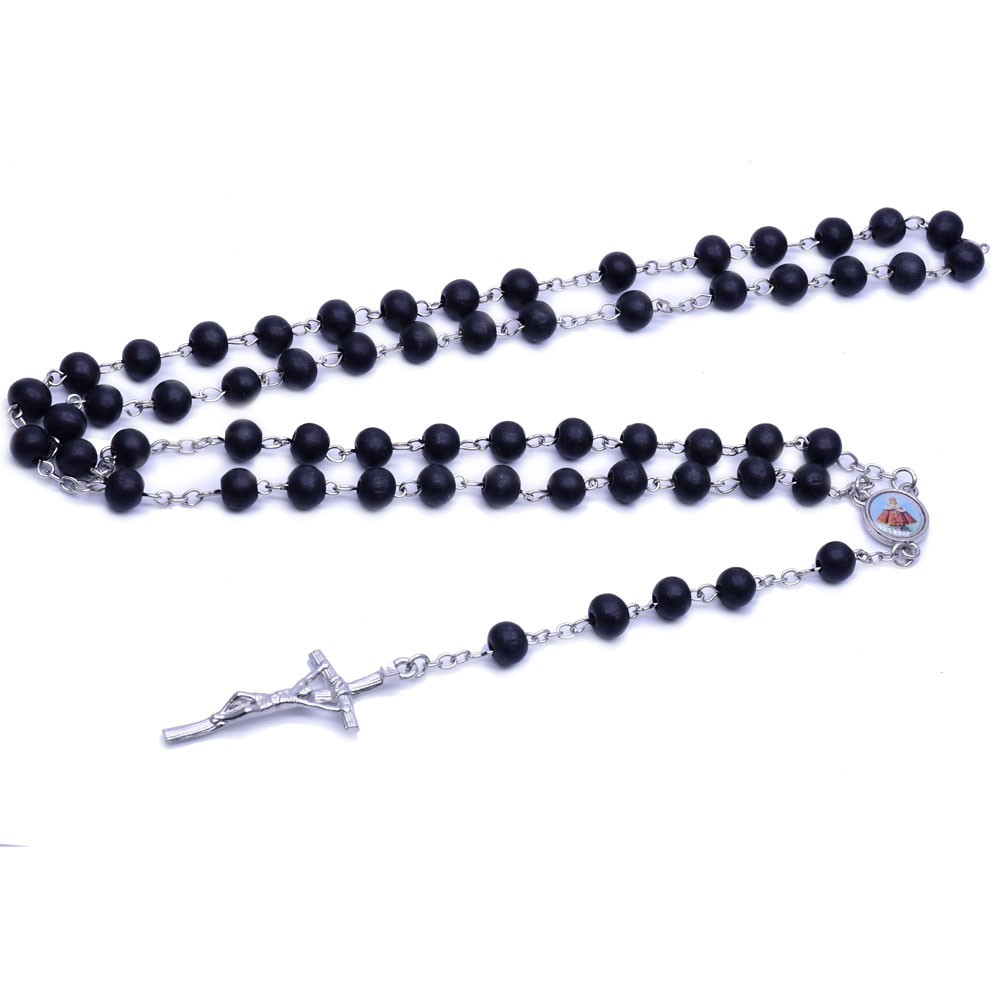 Radband halsband, Zink Alloy, med Trä, Cross, plated, mode smycken, blandade färger, 8mm, Längd 52 cm, Säljs av PC
