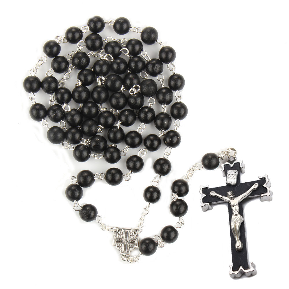 Radband halsband, Zink Alloy, med Trä, Cross, plated, mode smycken, svart, 8mm, Längd 72 cm, Säljs av PC