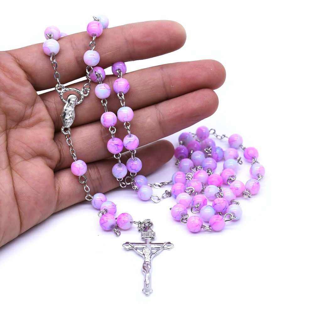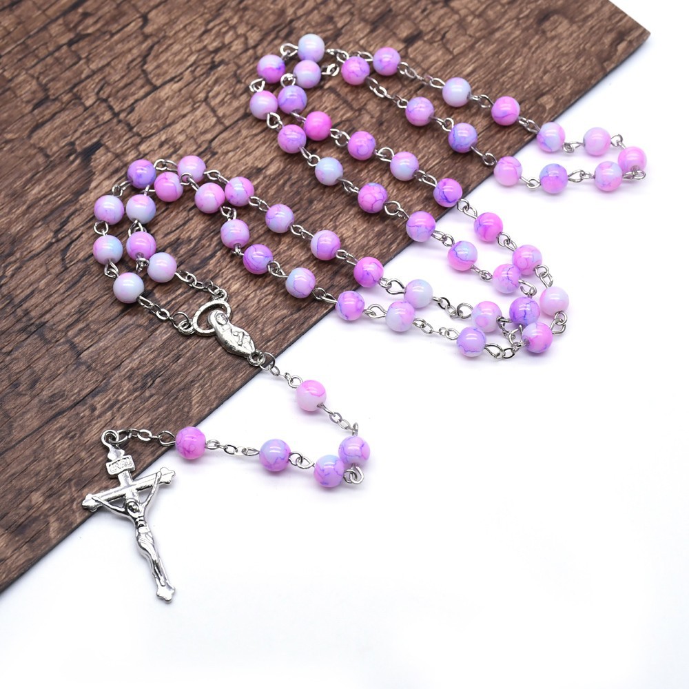 Radband halsband, Zink Alloy, med Glas, Cross, silver pläterad, mode smycken, blandade färger, 6mm, Längd 72 cm, Säljs av PC