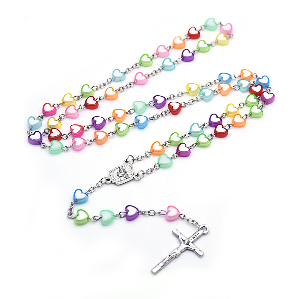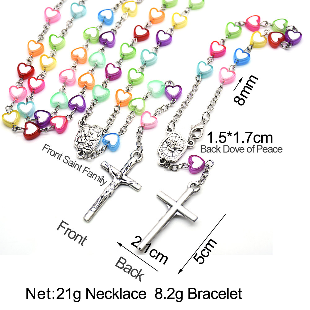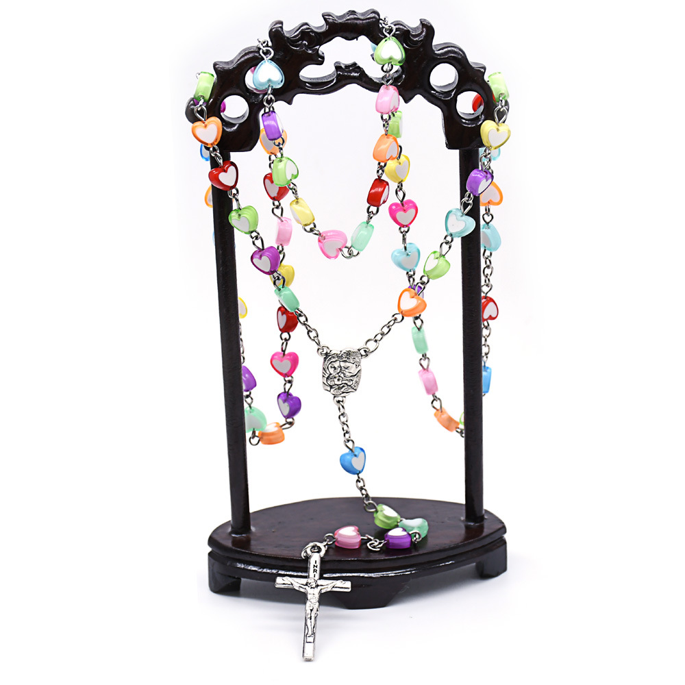 Radband halsband, Zink Alloy, med Plast, Cross, silver pläterad, mode smycken, blandade färger, 8mm, Längd 55 cm, Säljs av PC