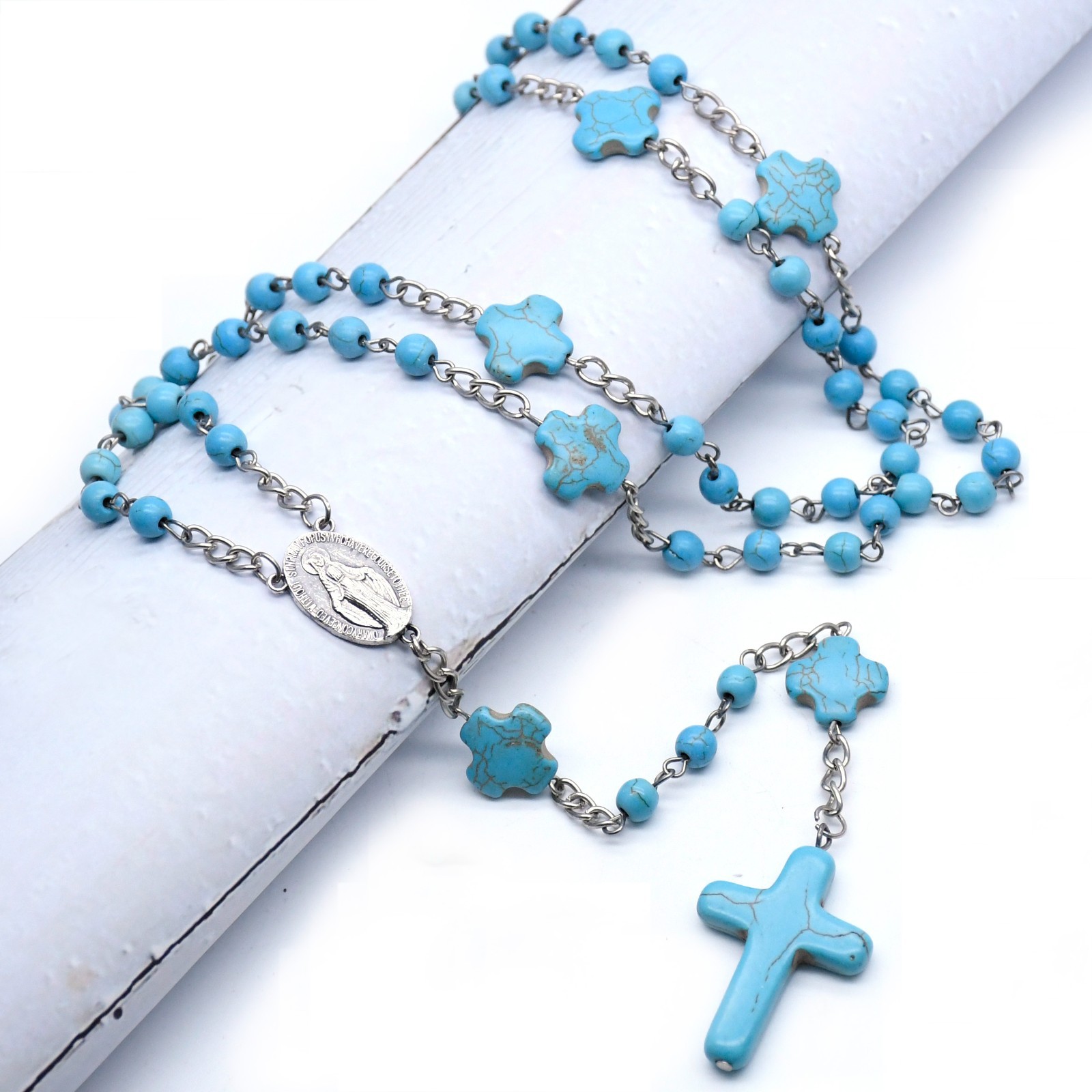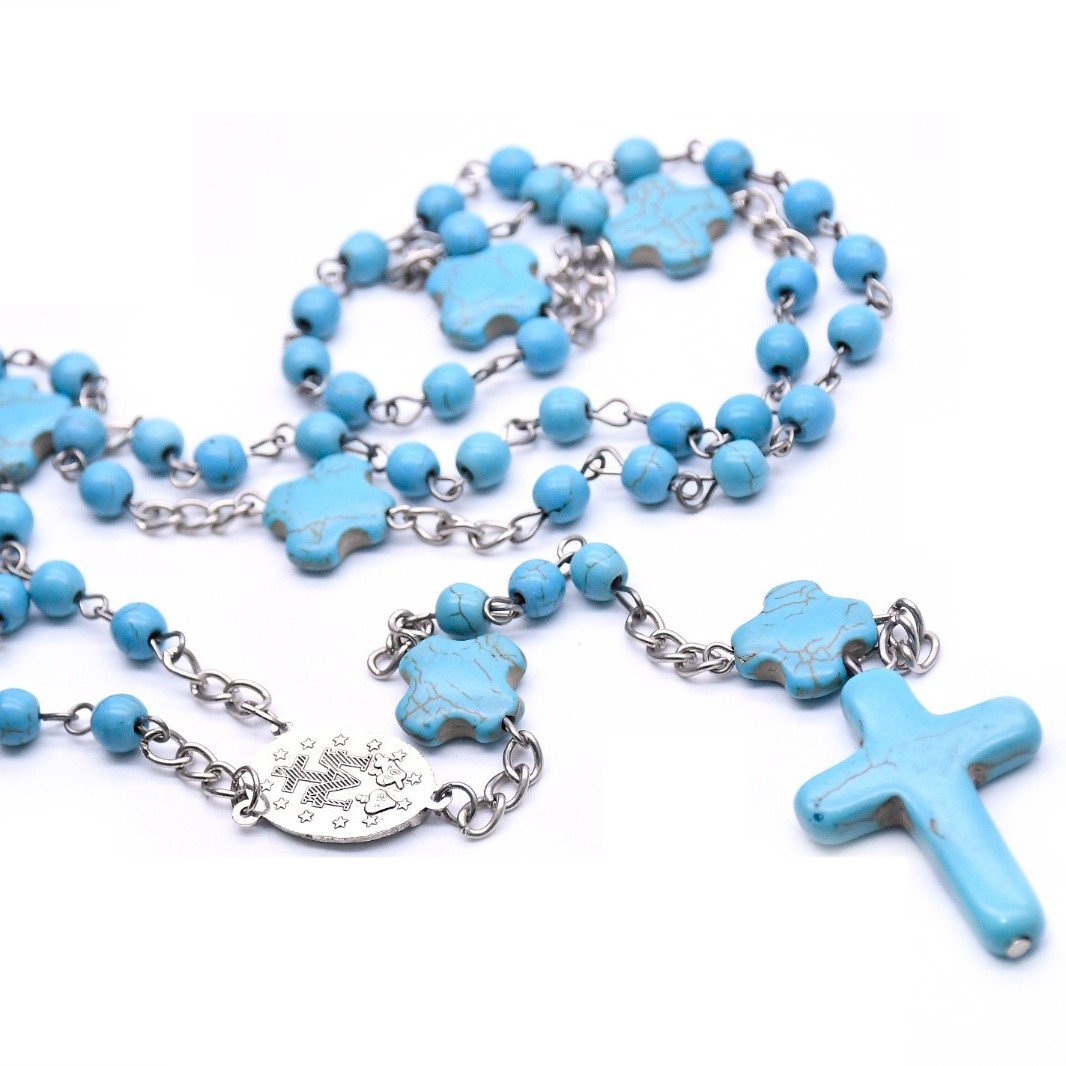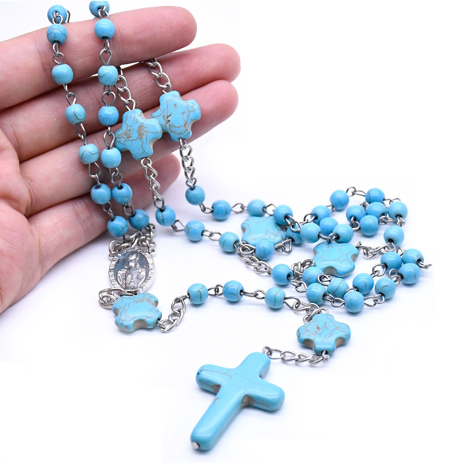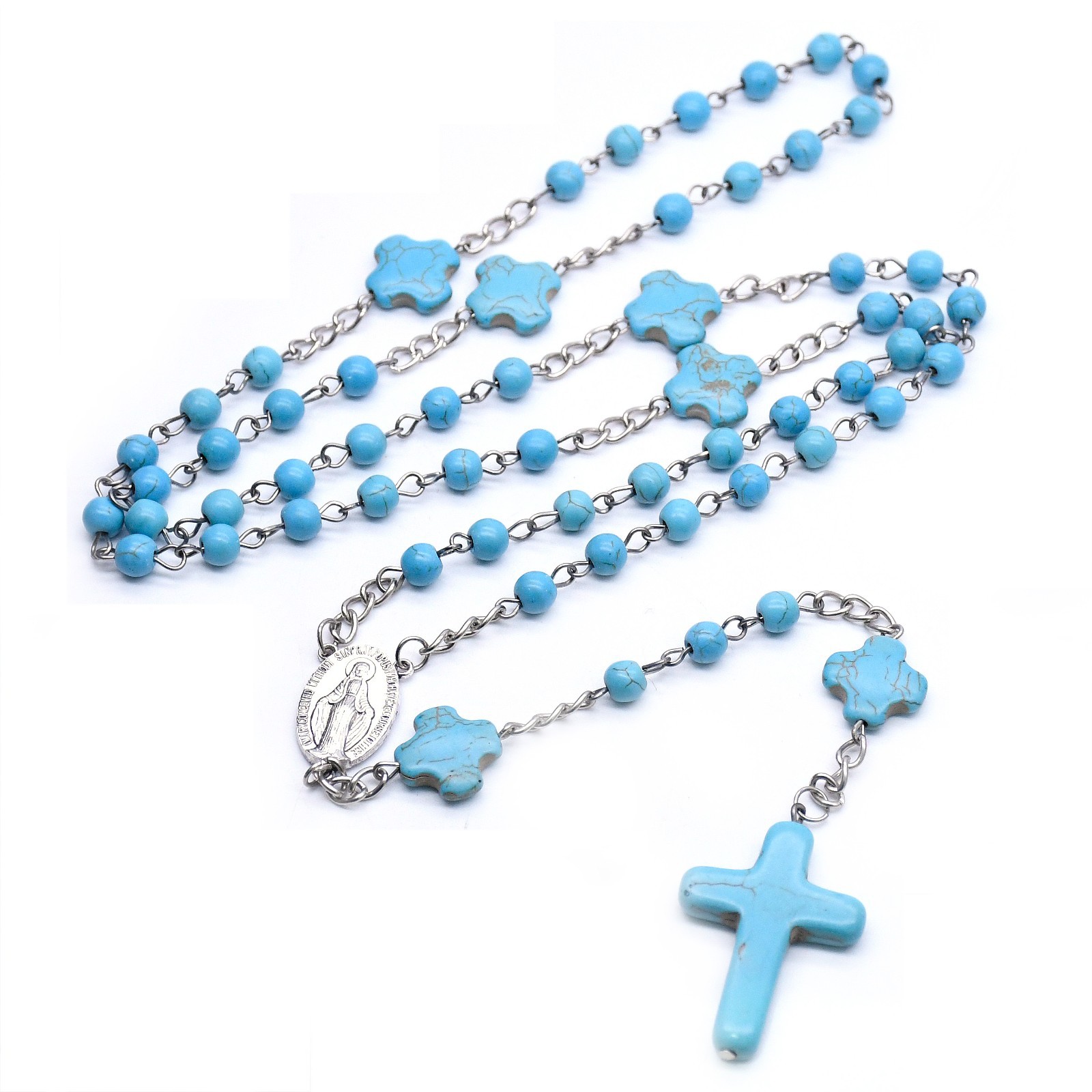 Radband halsband, Zink Alloy, med turkos, Cross, silver pläterad, mode smycken, blandade färger, 6mm, Längd 54.5 cm, Säljs av PC