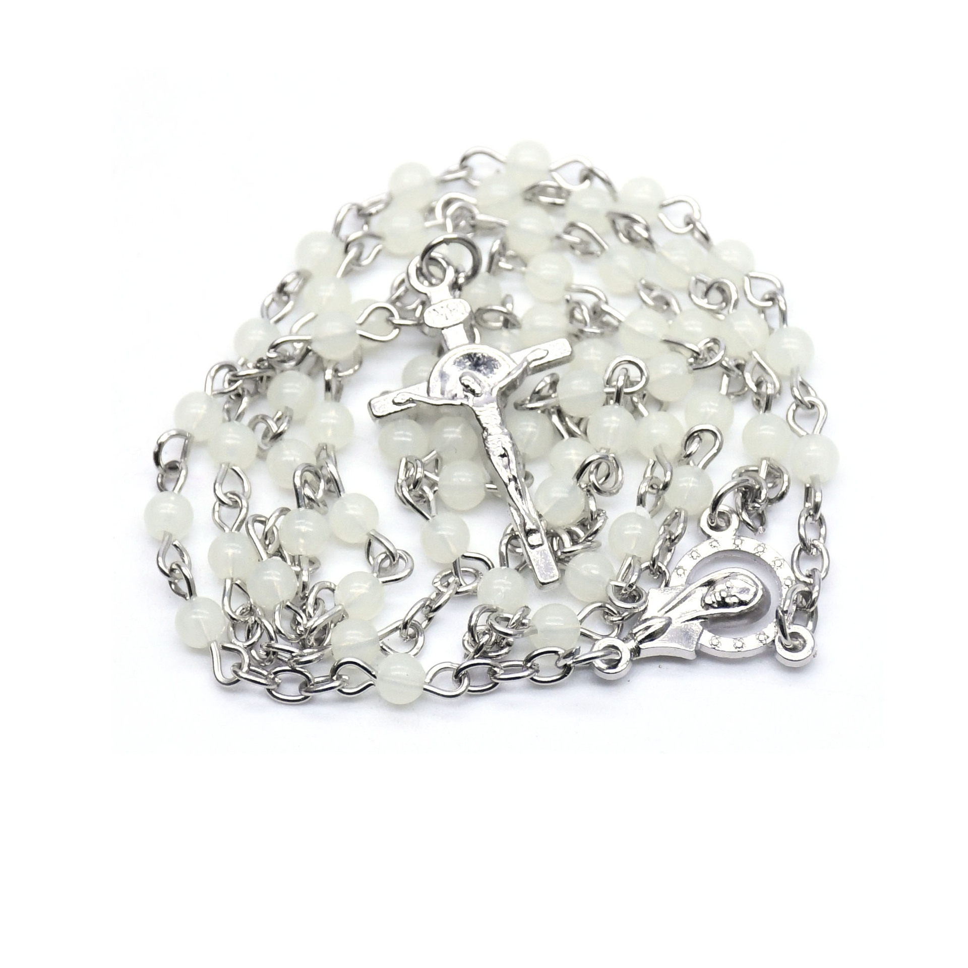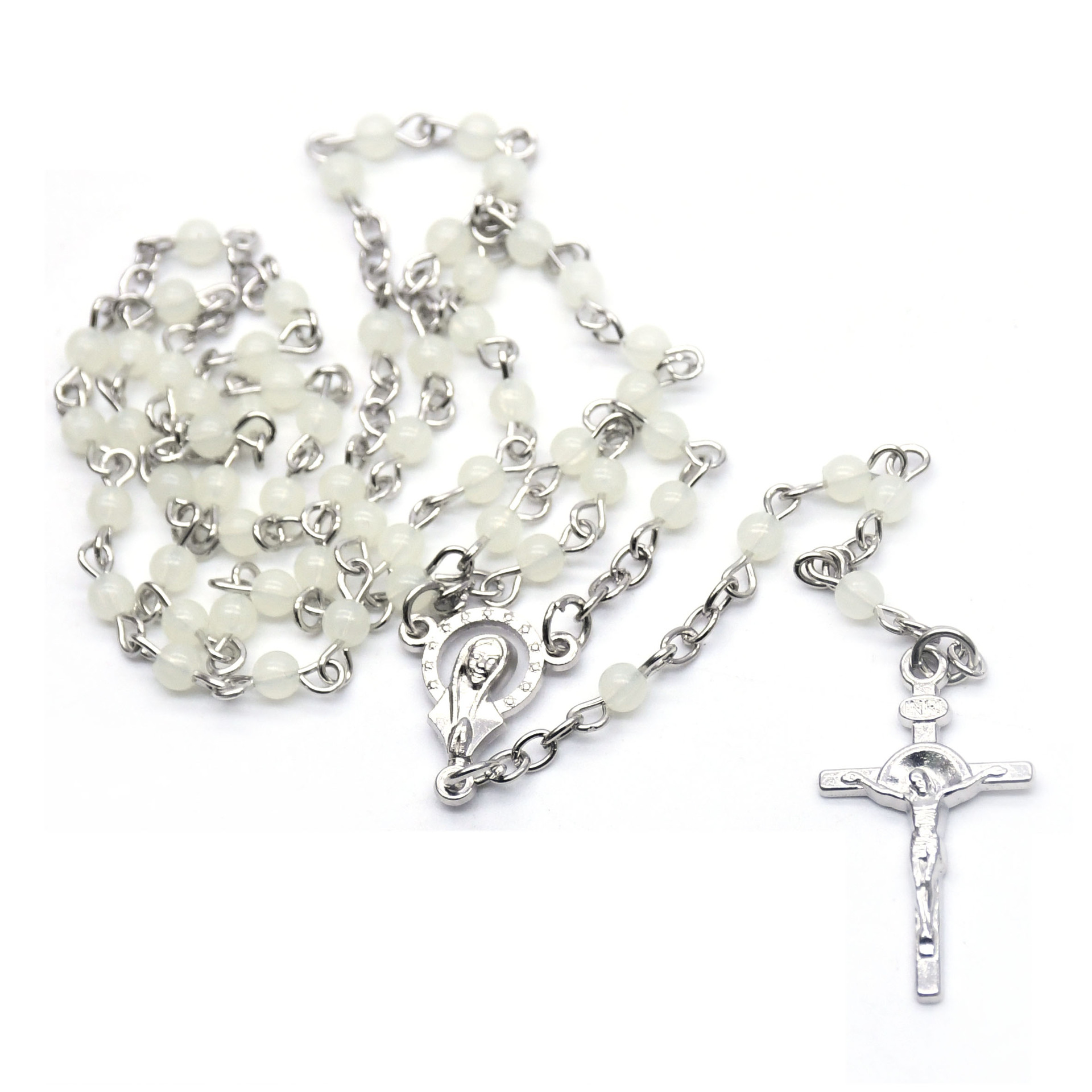 Radband halsband, Zink Alloy, med Plast, Cross, silver pläterad, mode smycken, vit, 3mm, Säljs av PC