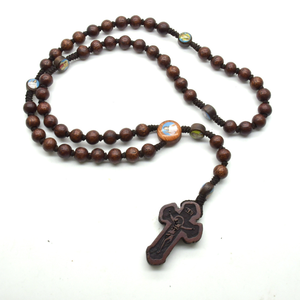 Radband halsband, Trä, Cross, mode smycken, blandade färger, 9x11mm, Längd 52 cm, Säljs av PC