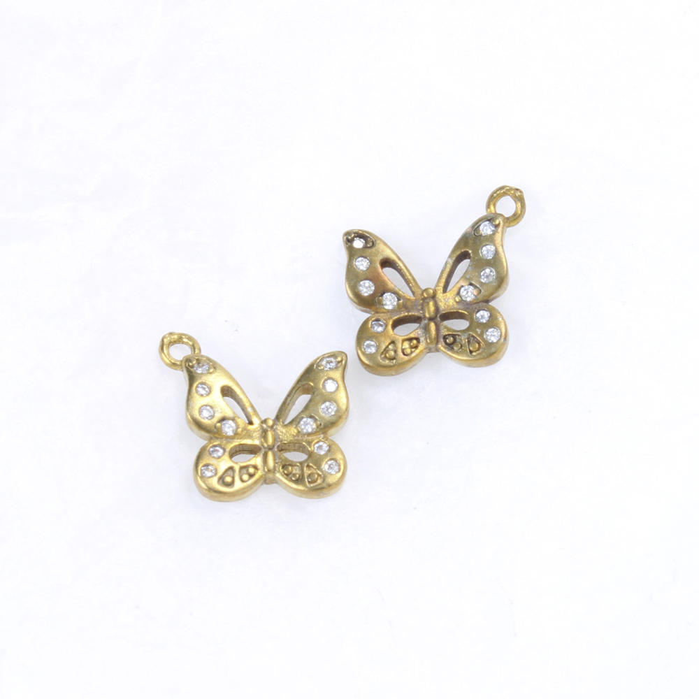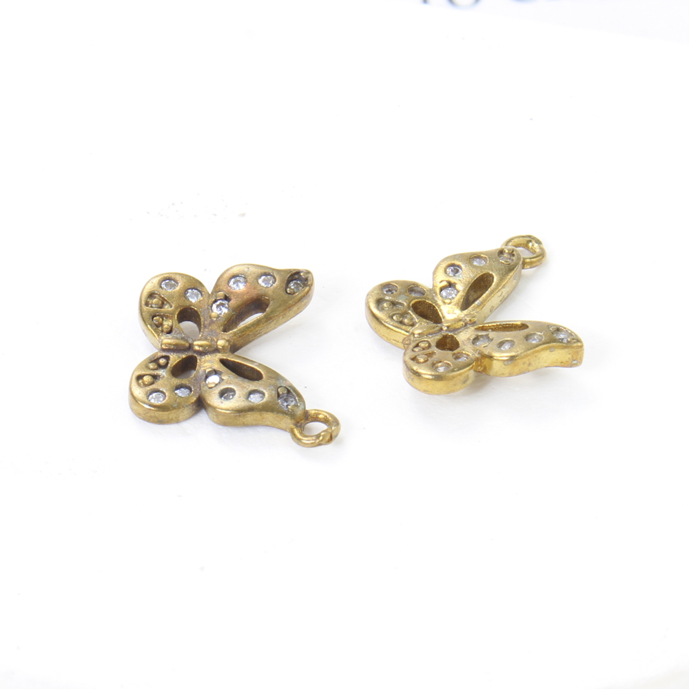 Rhinestone Brass Hängen, Mässing, Fjäril, plated, DIY & med strass, gyllene, nickel, bly och kadmium gratis, 11x12x2.50mm, Säljs av PC
