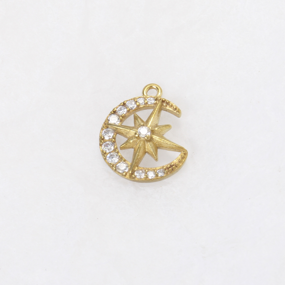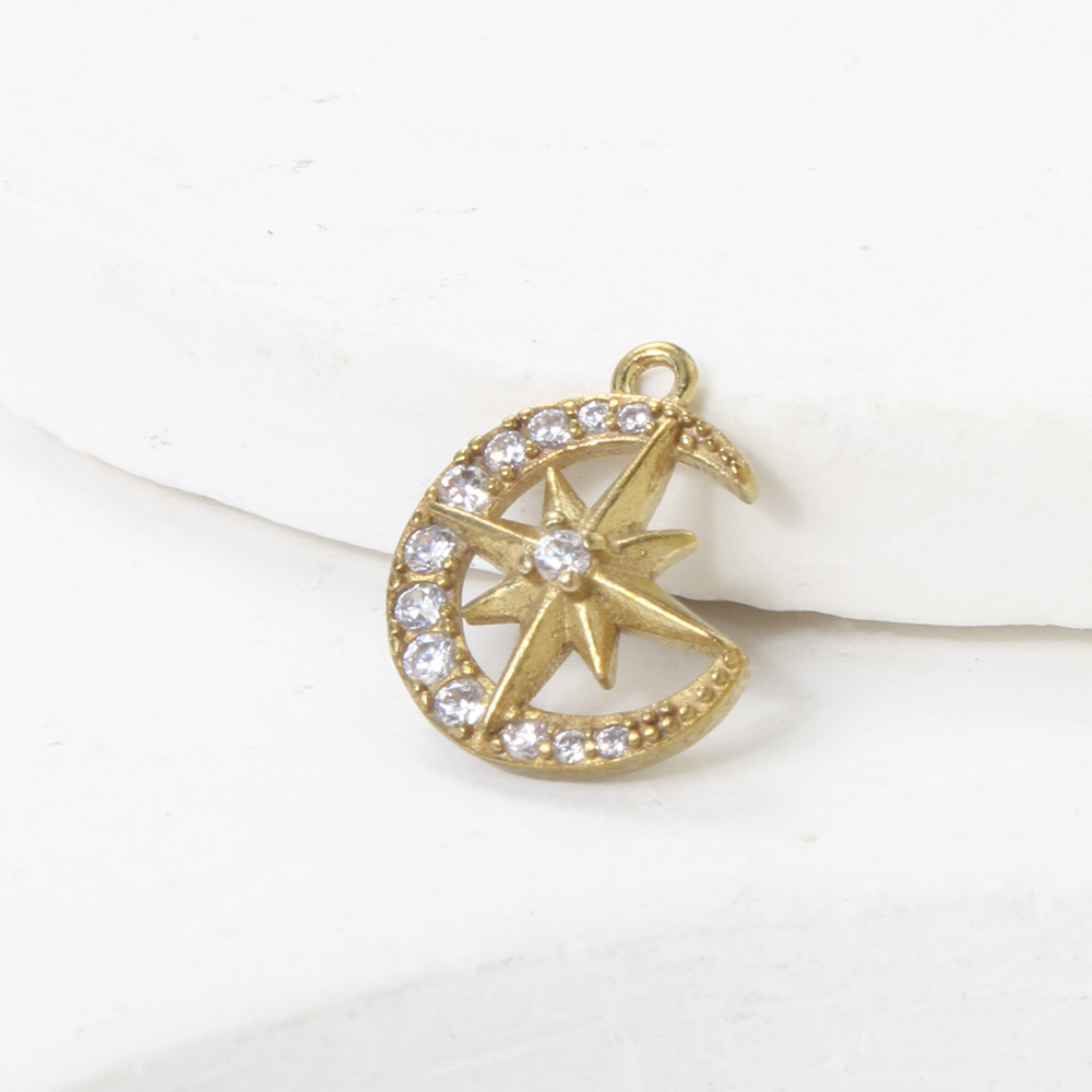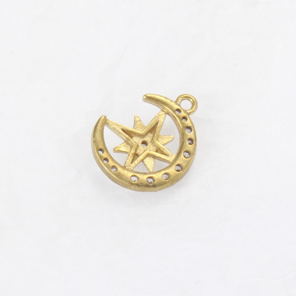 Rhinestone Brass Hängen, Mässing, Månen, plated, DIY & med strass, gyllene, nickel, bly och kadmium gratis, 13x10.20x3.30mm, Säljs av PC