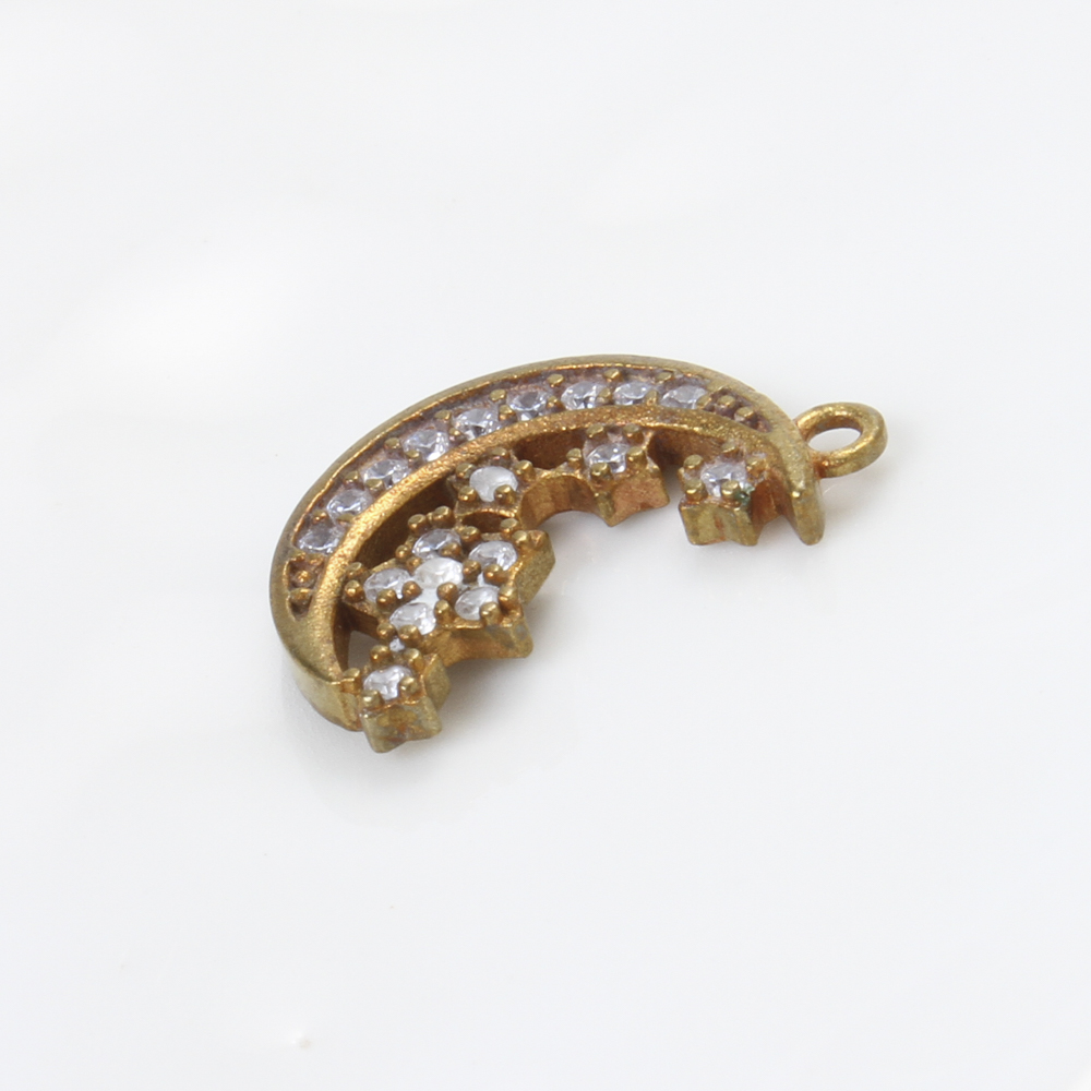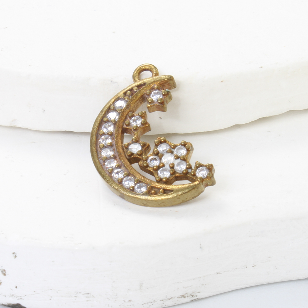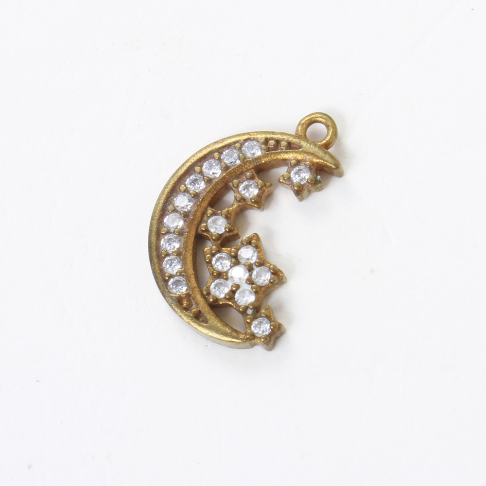 Rhinestone Brass Hängen, Mässing, Månen och Star, plated, DIY & med strass, gyllene, nickel, bly och kadmium gratis, 16.30x10.60x2mm, Säljs av PC