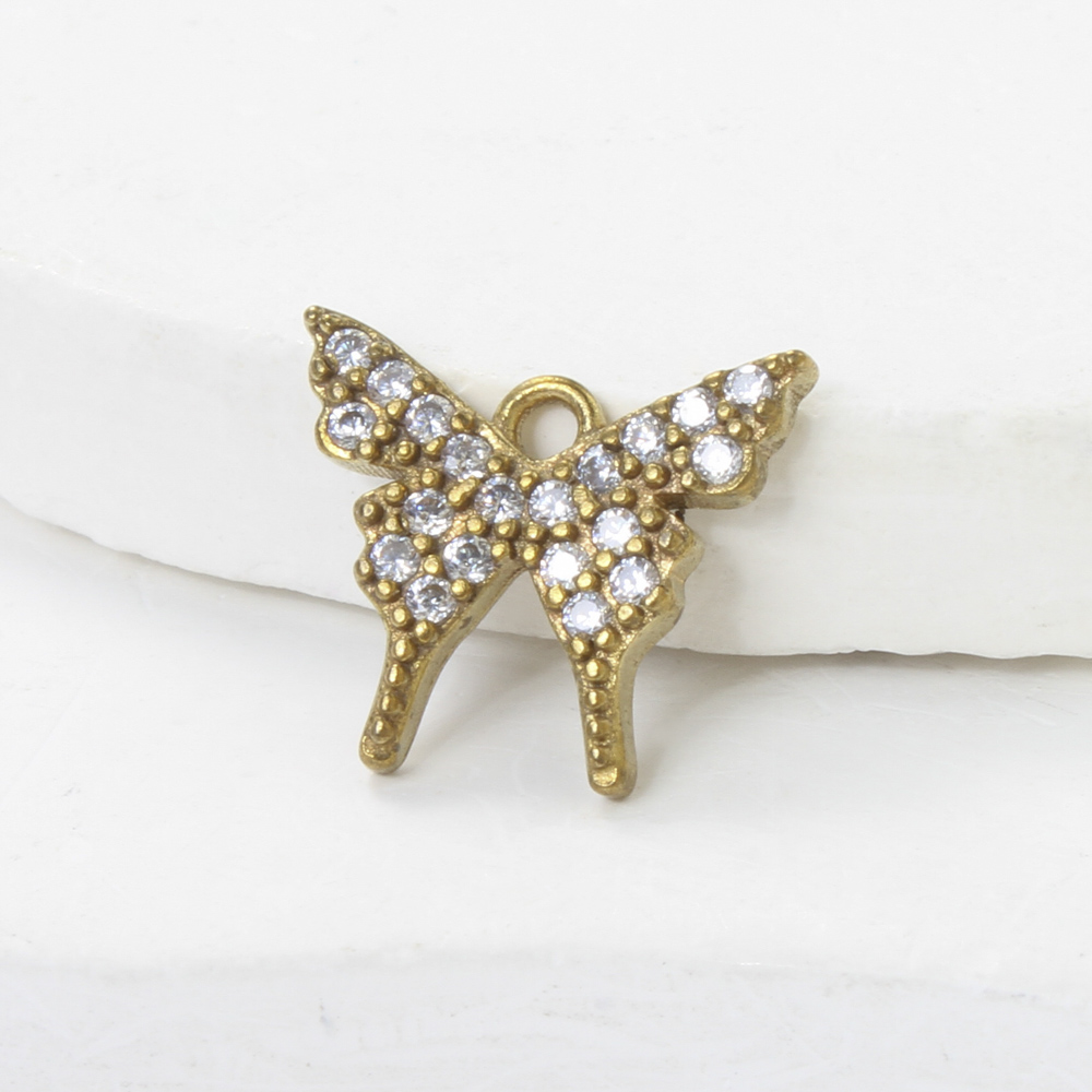 Rhinestone Brass Hängen, Mässing, Fjäril, plated, DIY & med strass, gyllene, nickel, bly och kadmium gratis, 10.70x12.40x8mm, Säljs av PC