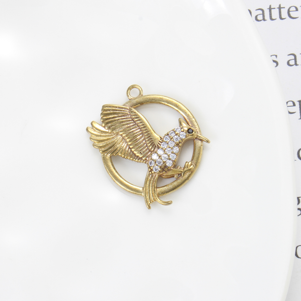 Rhinestone Brass Hängen, Mässing, Fågel, plated, DIY & med strass, gyllene, nickel, bly och kadmium gratis, 23.60x23.20x3.60mm, Säljs av PC