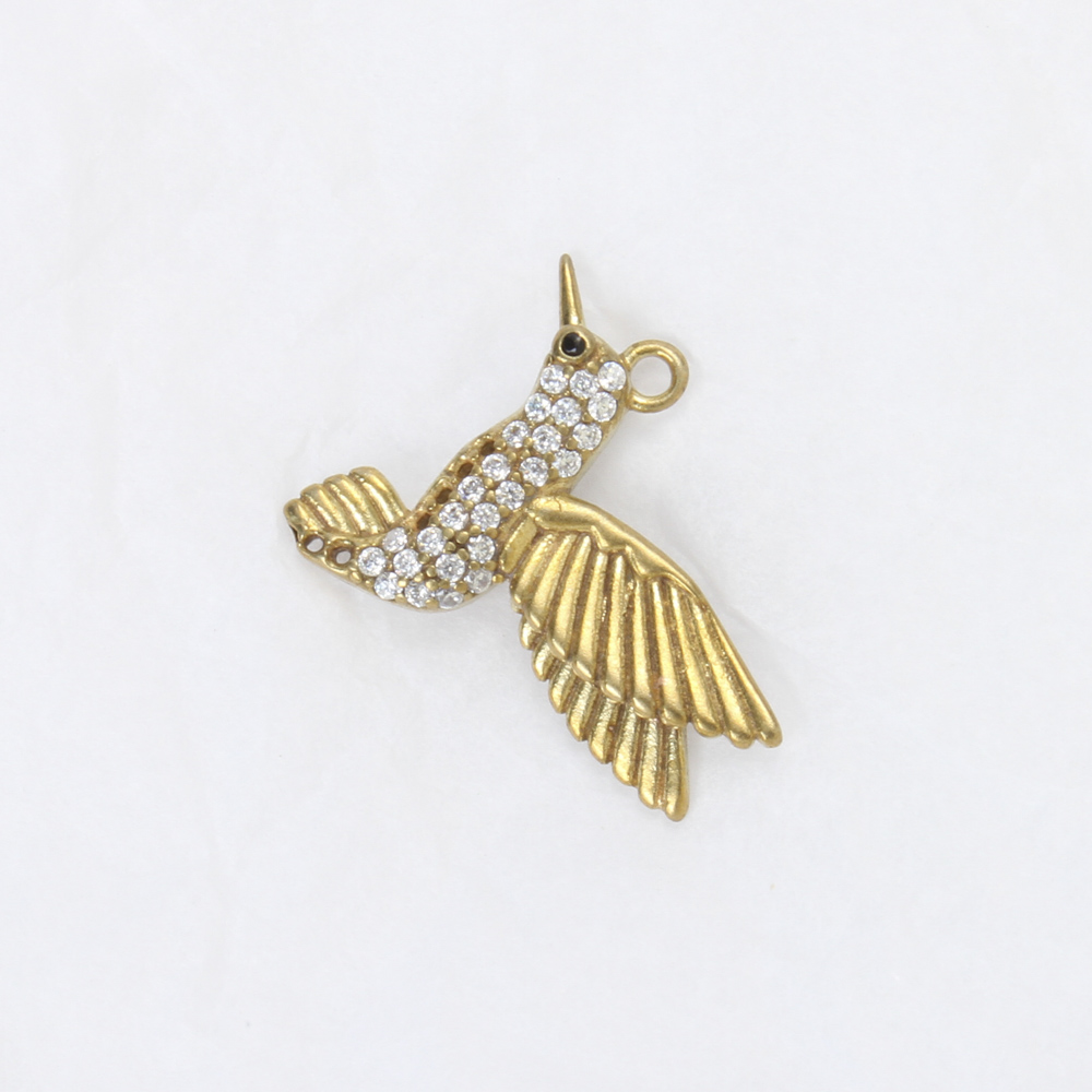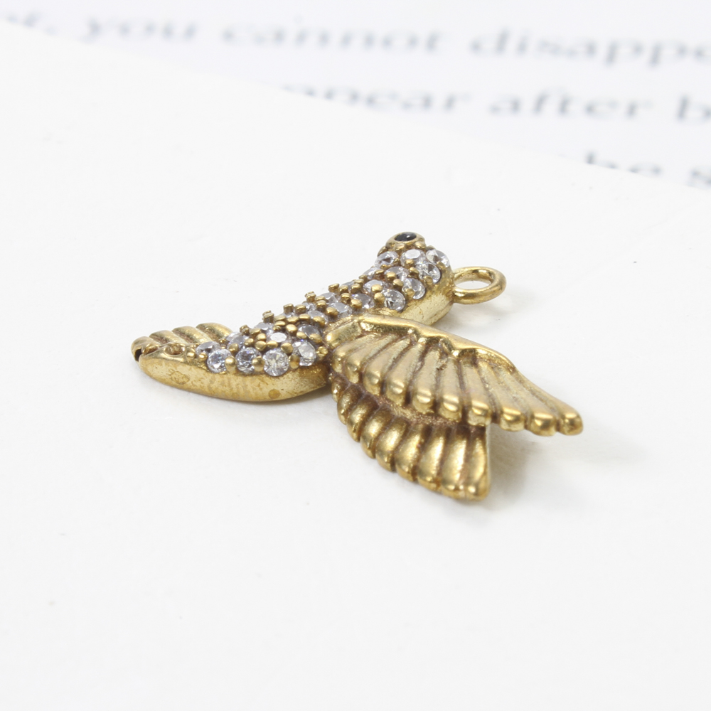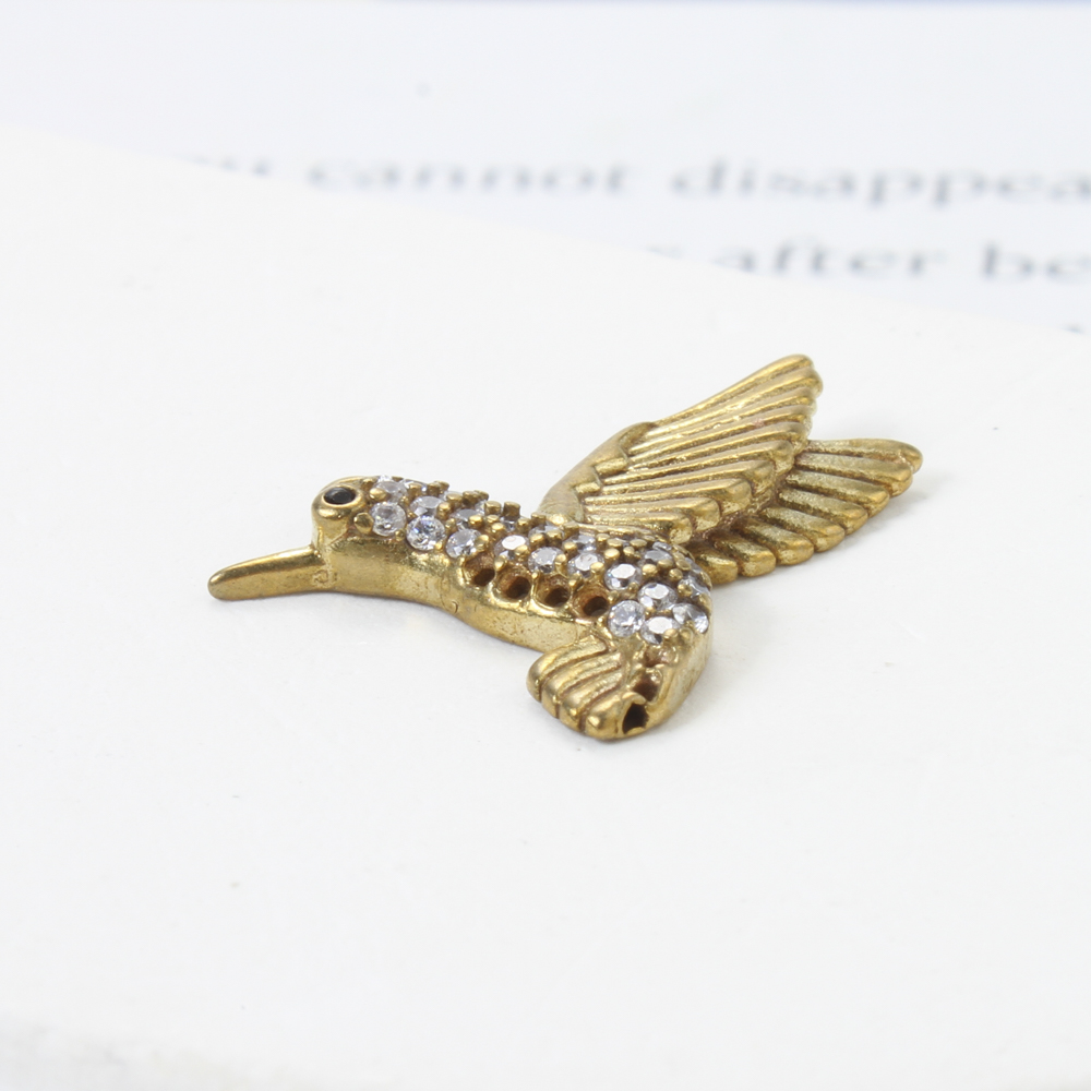Rhinestone Brass Hängen, Mässing, Fågel, plated, DIY & med strass, gyllene, nickel, bly och kadmium gratis, 32x13x3.70mm, Säljs av PC