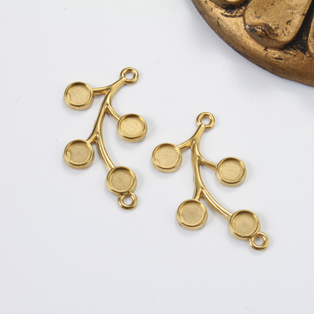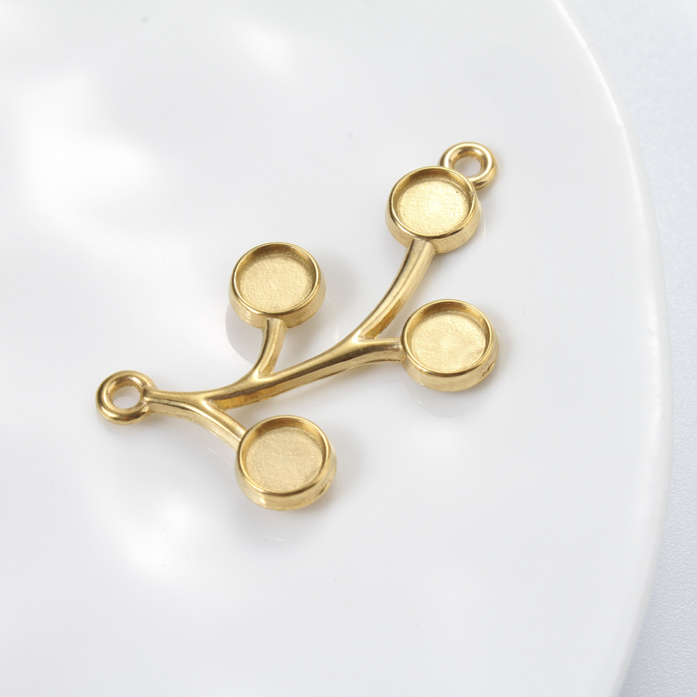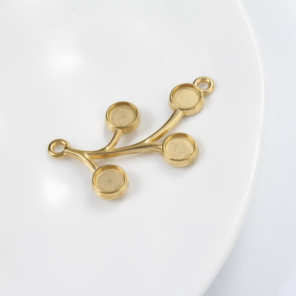 Rostfritt Stål hänge Inställning, 304 rostfritt stål, Branch, guldfärg pläterade, DIY & dubbel-håls, gyllene, 33.40x18.50x1.90mm, Säljs av PC