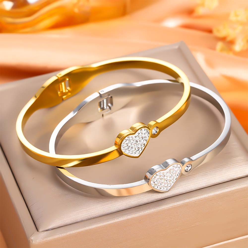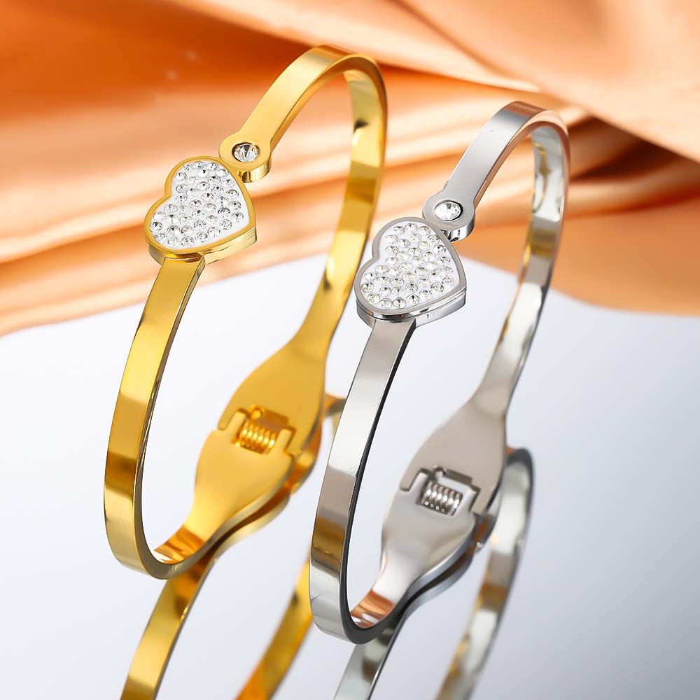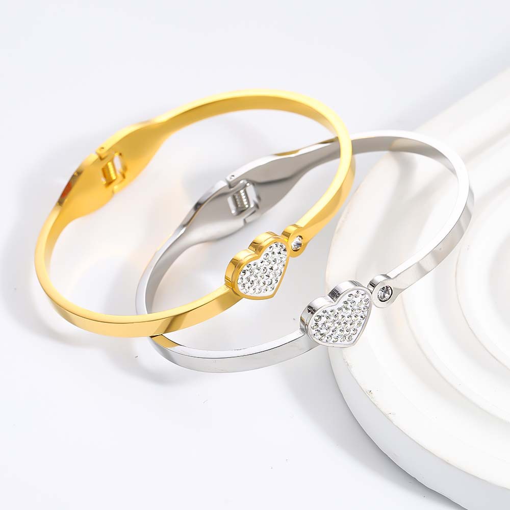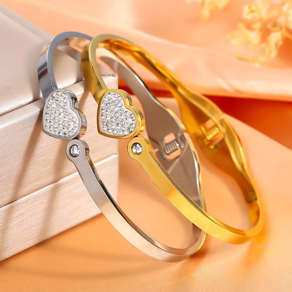Rostfritt stål Armring, ROSTFRITT STÅL, Hjärta, plated, för kvinna & med strass, fler färger för val, 4mm, Innerdiameter:Ca 63mm, Säljs av PC