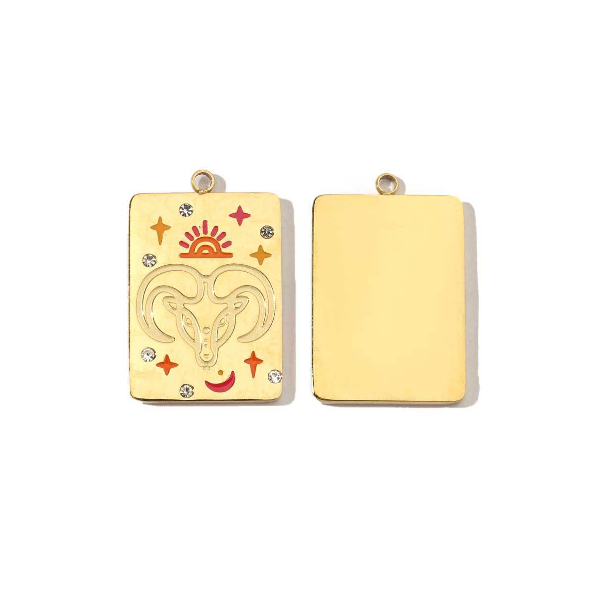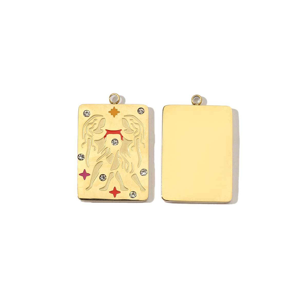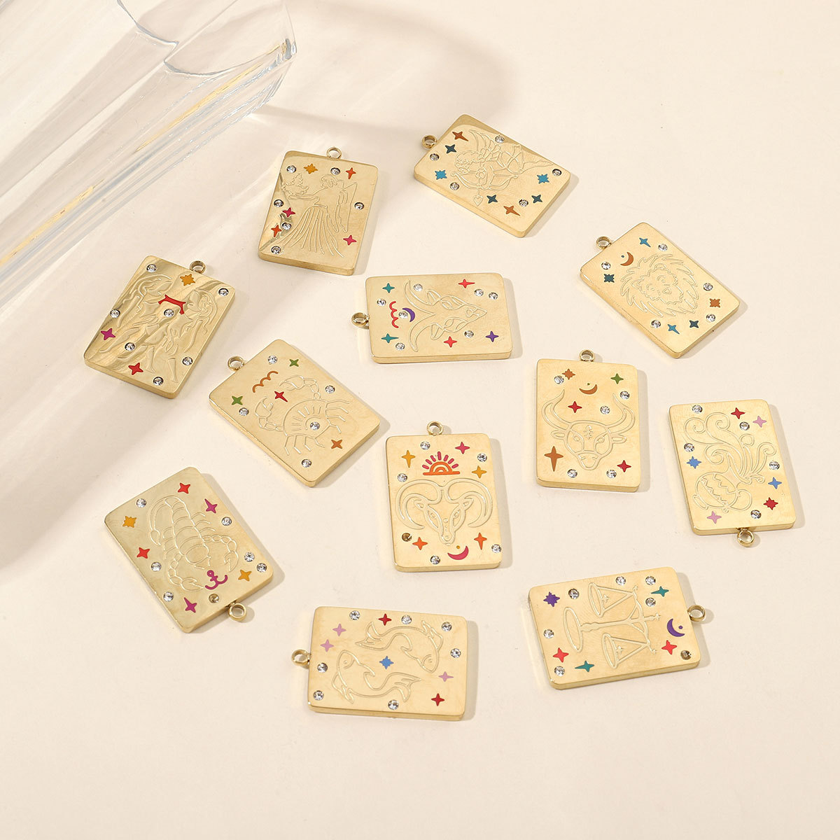 Rostfritt stål Constellation Hänge, 304 rostfritt stål, 12 Tecken på Zodiac, guldfärg pläterade, DIY & olika stilar för val & emalj & med strass, 18x28mm, Säljs av PC