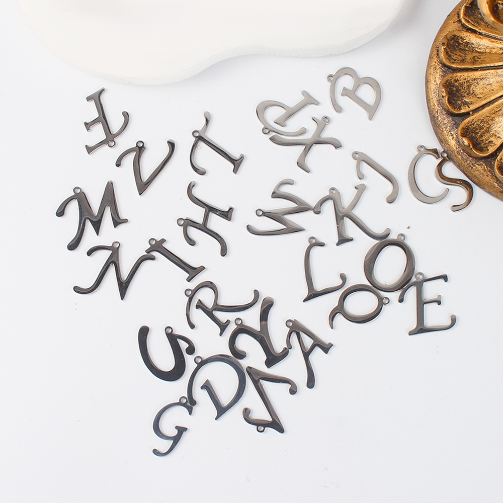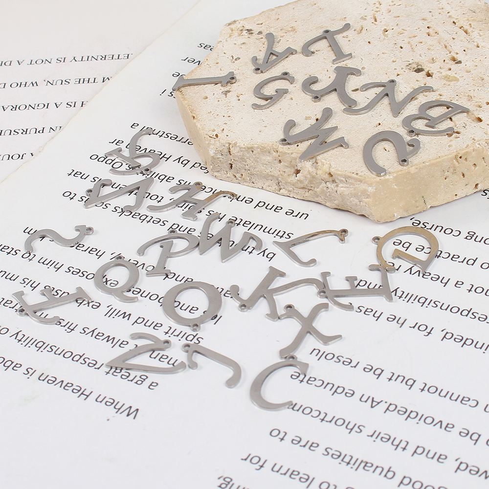 Rostfritt stål Häng Brev, 304 rostfritt stål, Alfabetsbokstav, silver pläterad, DIY, silver, Säljs av PC
