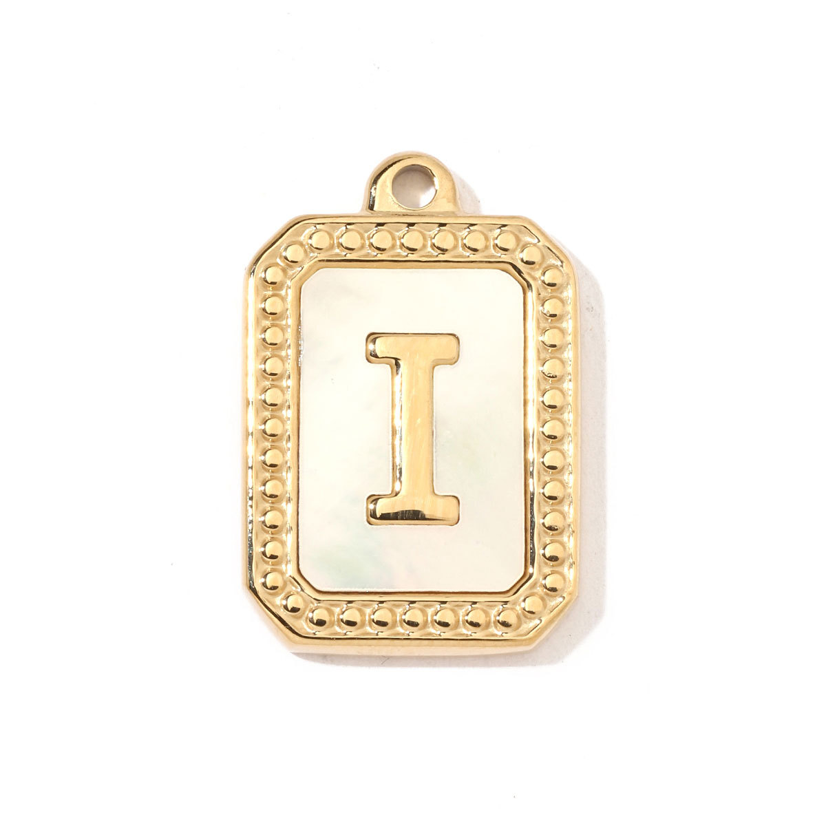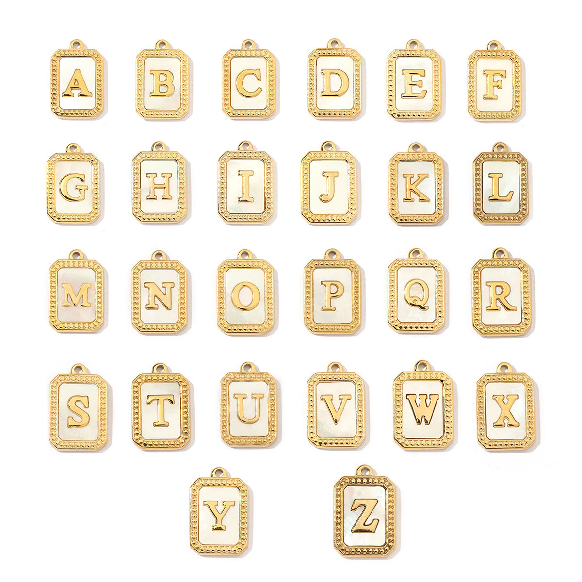 Rostfritt stål Häng Brev, 304 rostfritt stål, med White Shell, Alfabetsbokstav, guldfärg pläterade, DIY, fler färger för val, 3PC/Bag, Säljs av Bag