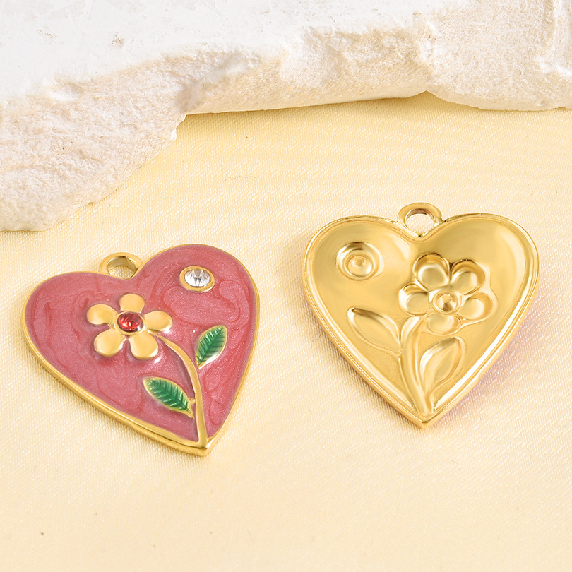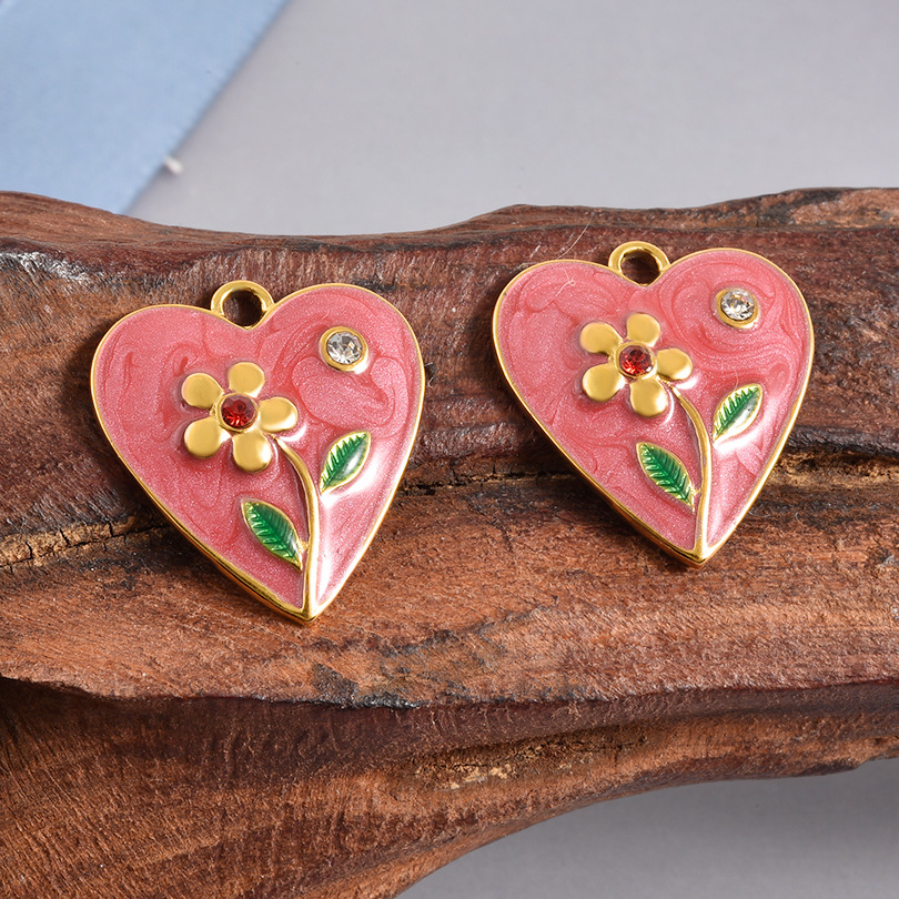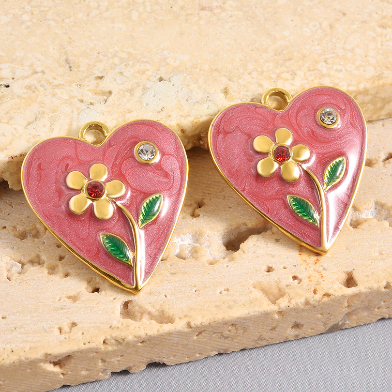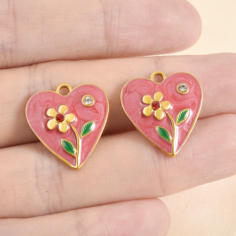 Rostfritt stål Hjärta Hängen, 304 rostfritt stål, guldfärg pläterade, DIY & emalj & med strass, blandade färger, 10PC/Bag, Säljs av Bag