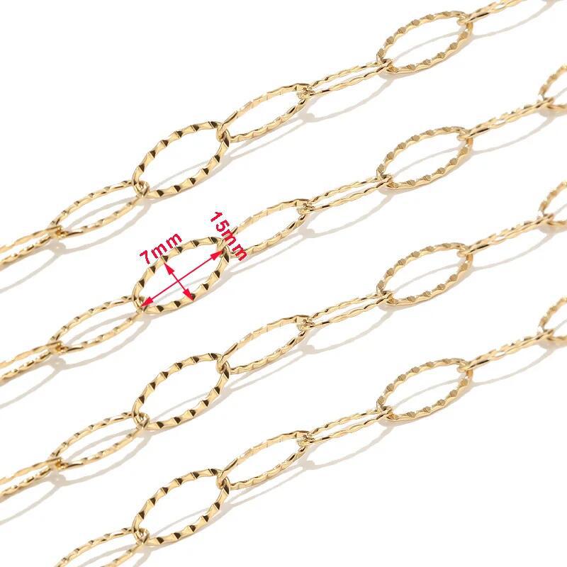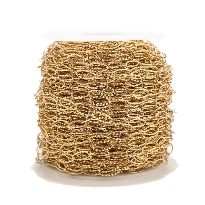 Rostfritt stål Oval kedja, 304 rostfritt stål, guldfärg pläterade, DIY, Säljs av m