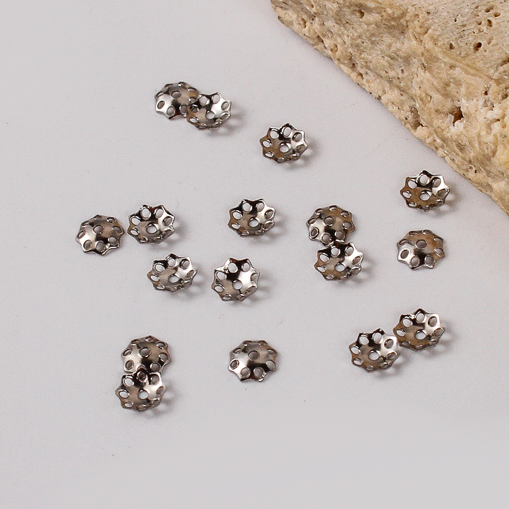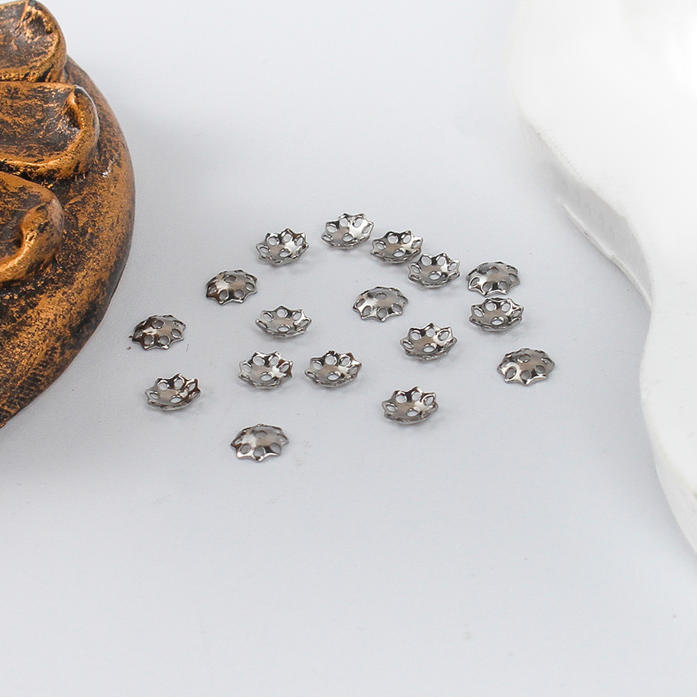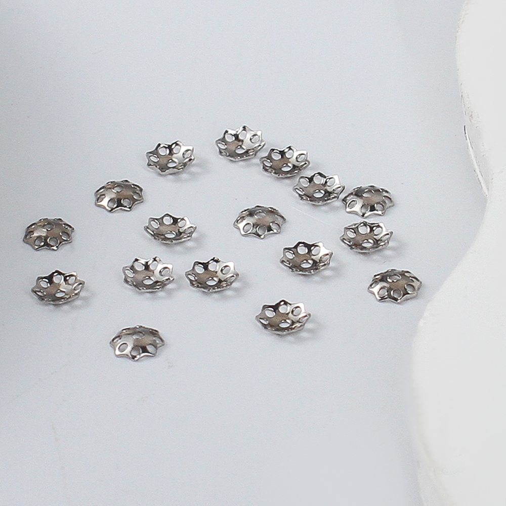 Rostfritt stål Pärlor Keps, 304 rostfritt stål, Blomma, silver pläterad, DIY, silver, Friska Armband, 4.61x0.96x4.68mm, Innerdiameter:Ca 0.5mm, Säljs av PC
