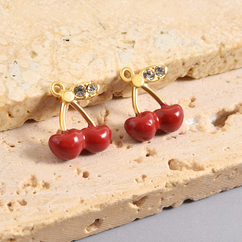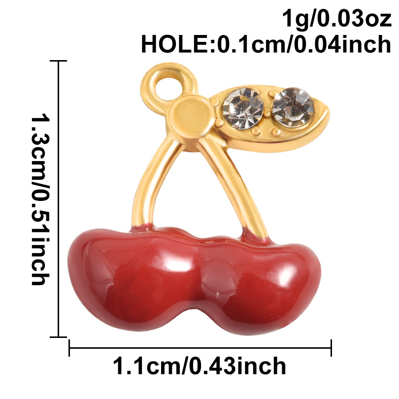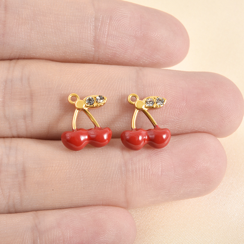 Rostfritt stål Smycken Hängen, 304 rostfritt stål, Körsbär, guldfärg pläterade, DIY & emalj & med strass, blandade färger, 10PC/Bag, Säljs av Bag