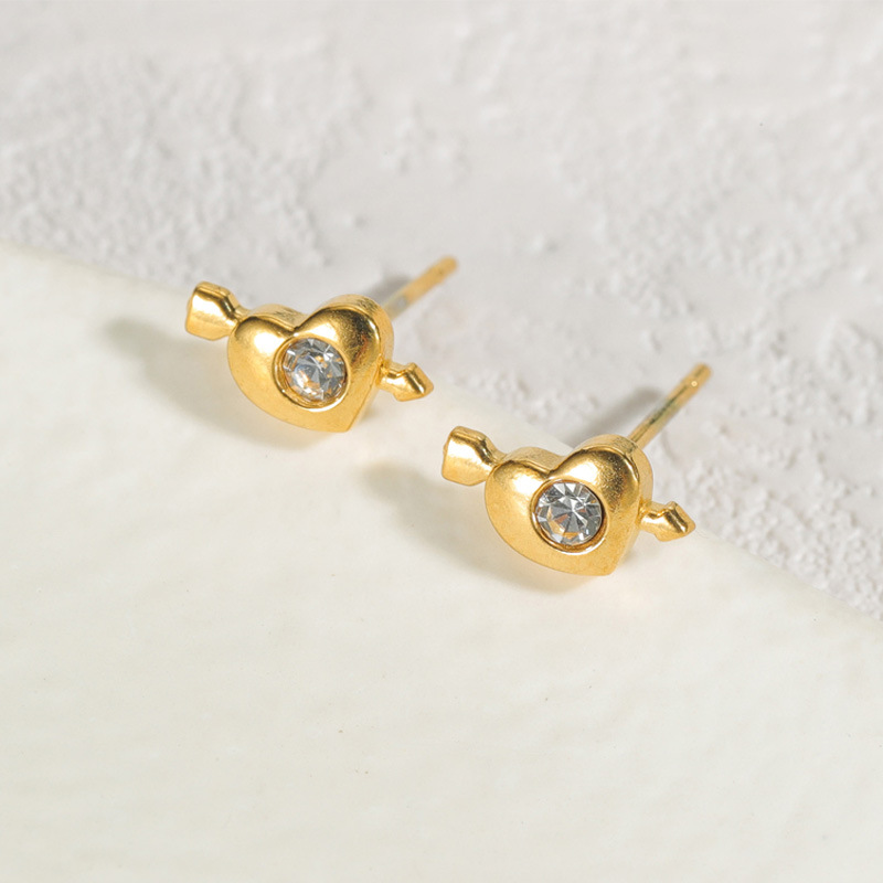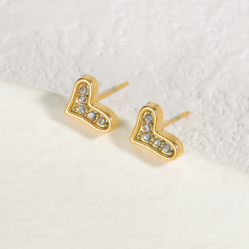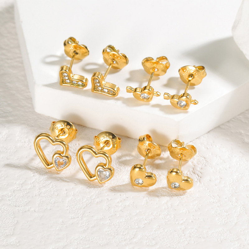 Rostfritt stål Stud Örhängen, 304 rostfritt stål, Hjärta, plated, olika stilar för val & för kvinna & med strass, gyllene, Säljs av Par