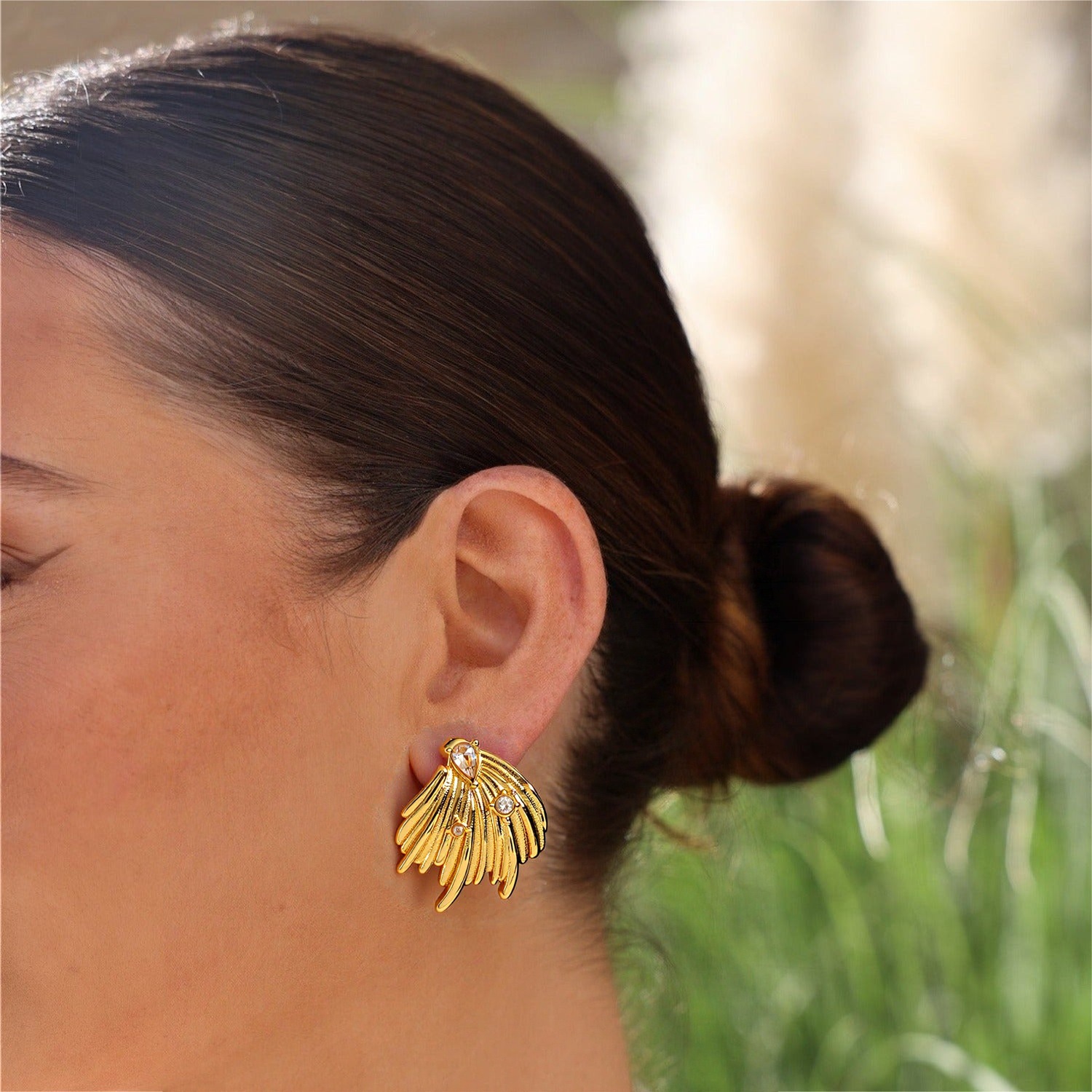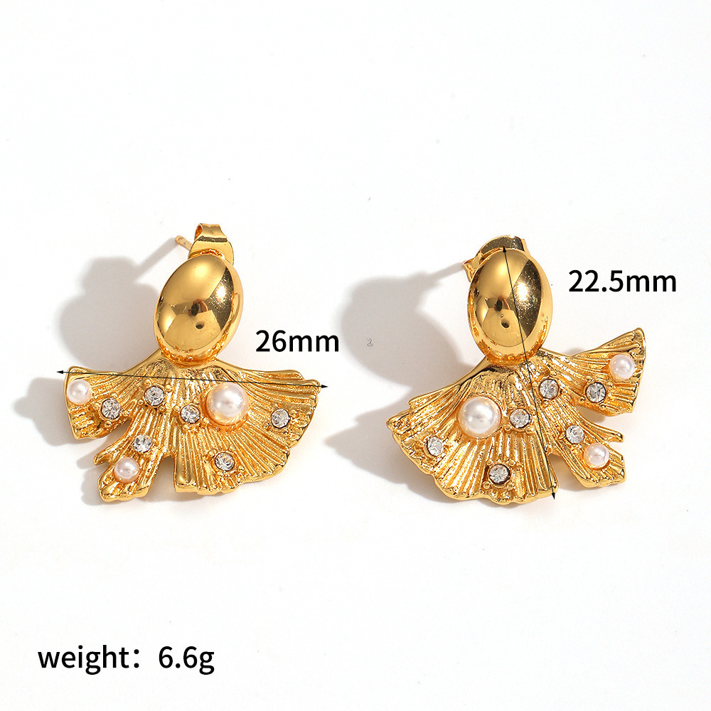 Rostfritt stål Stud Örhängen, 304 rostfritt stål, Ginkgo blad, plated, mode smycken & för kvinna, gyllene, Säljs av Par