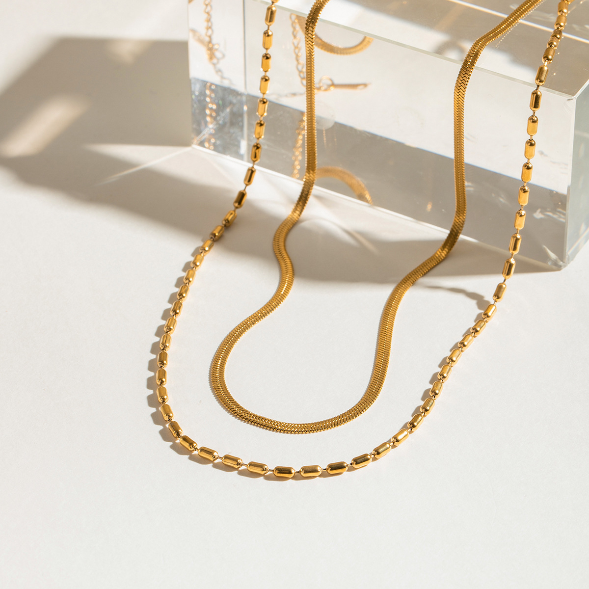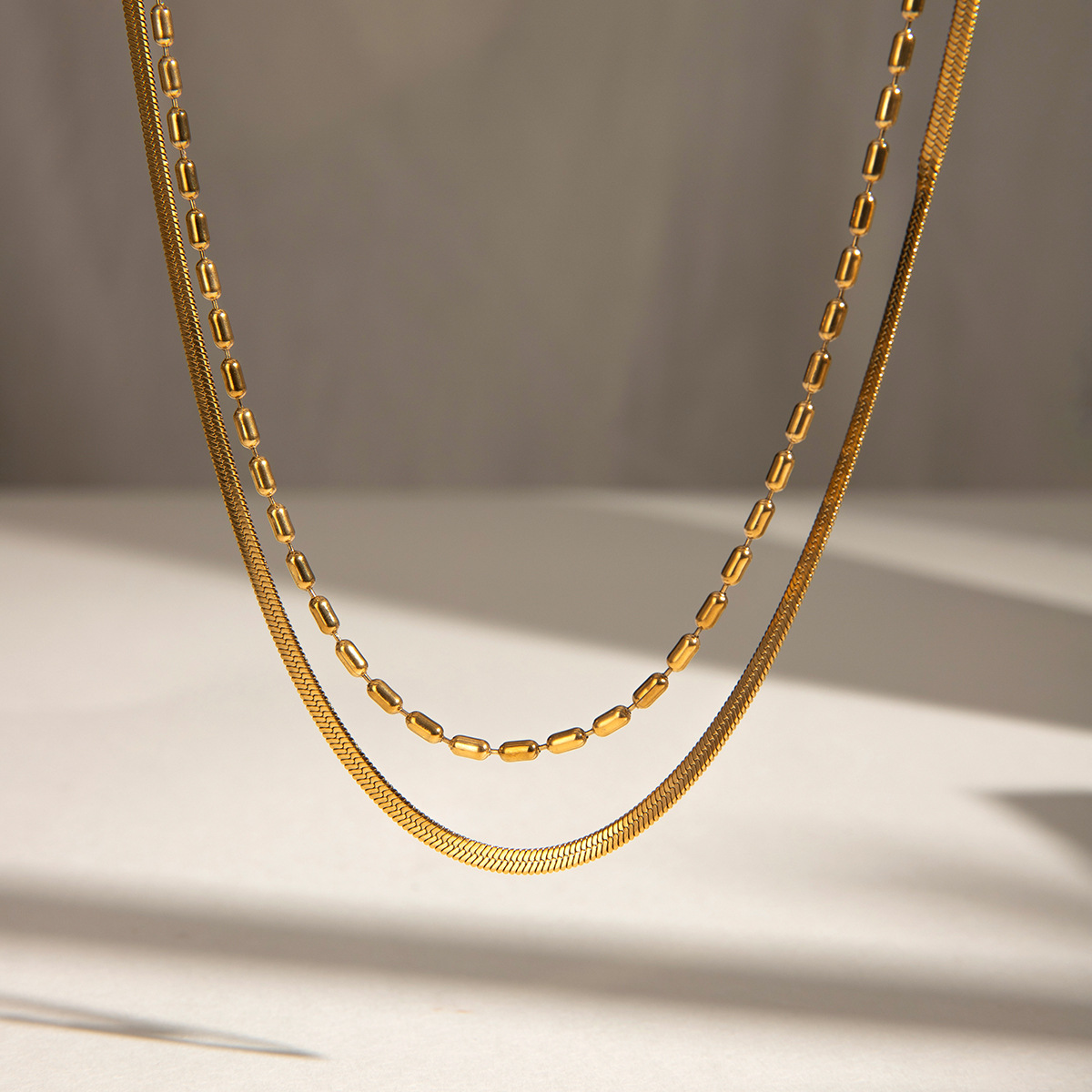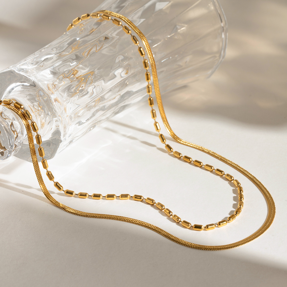 Rostfritt stål kedja halsband, 304 rostfritt stål, plated, Dubbla lager & mode smycken & för kvinna, gyllene, Säljs av PC