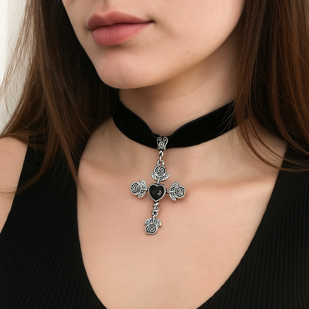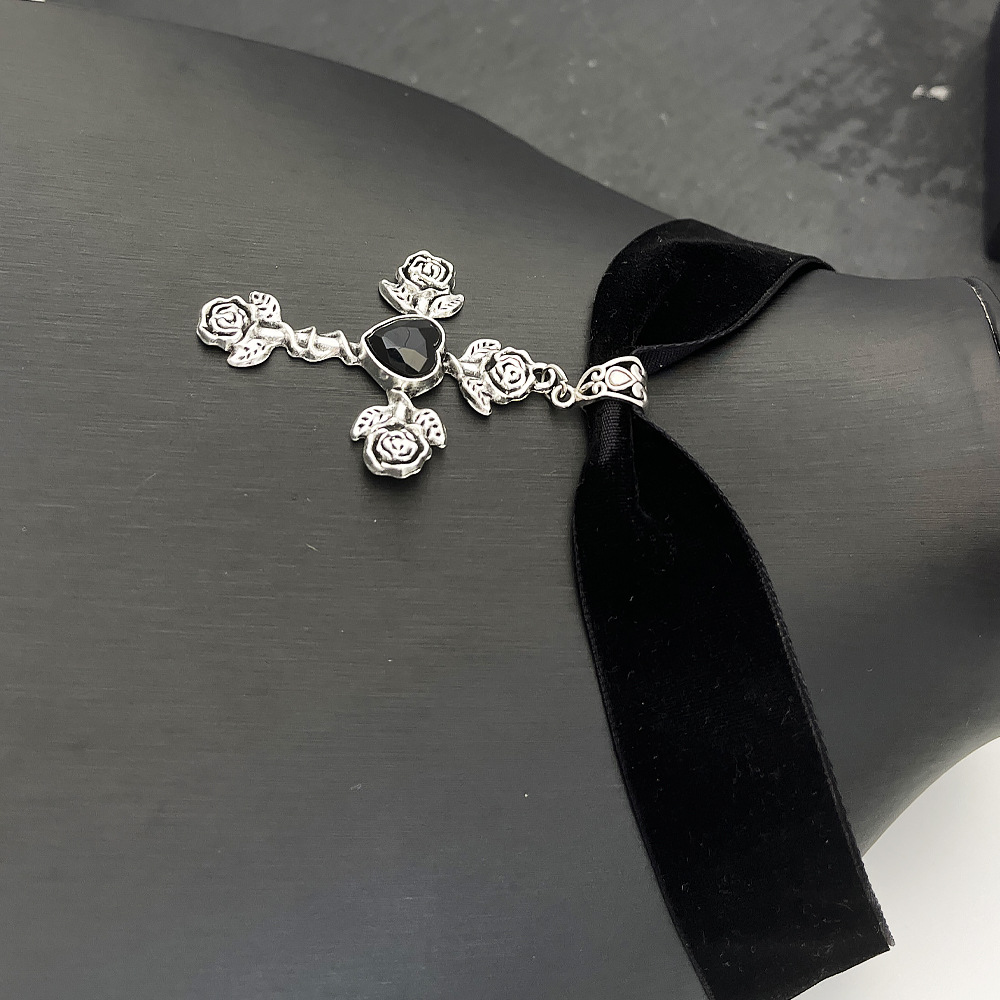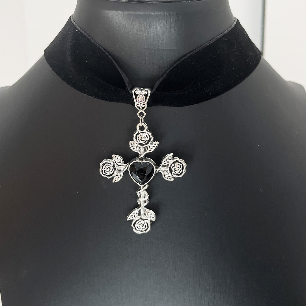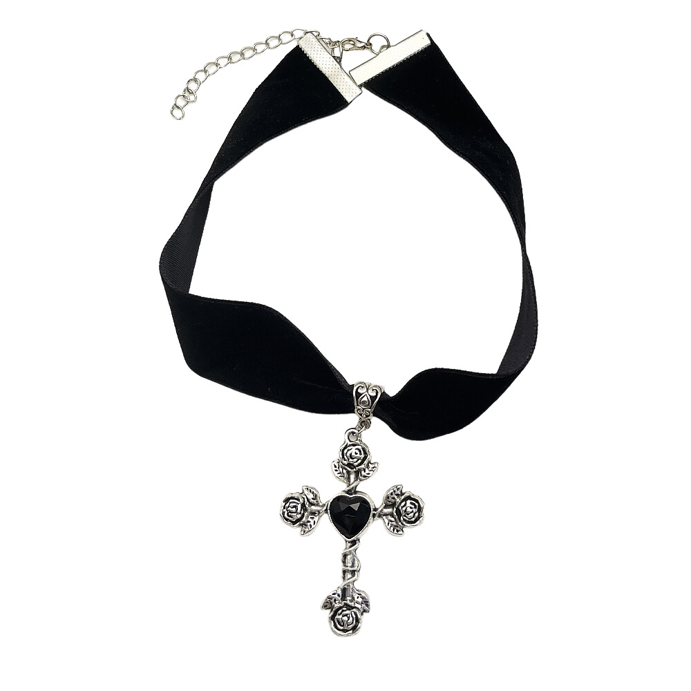 Sammet choker, Zink Alloy, Cross, guldfärg pläterade, mode smycken & med strass, fler färger för val, Säljs av PC