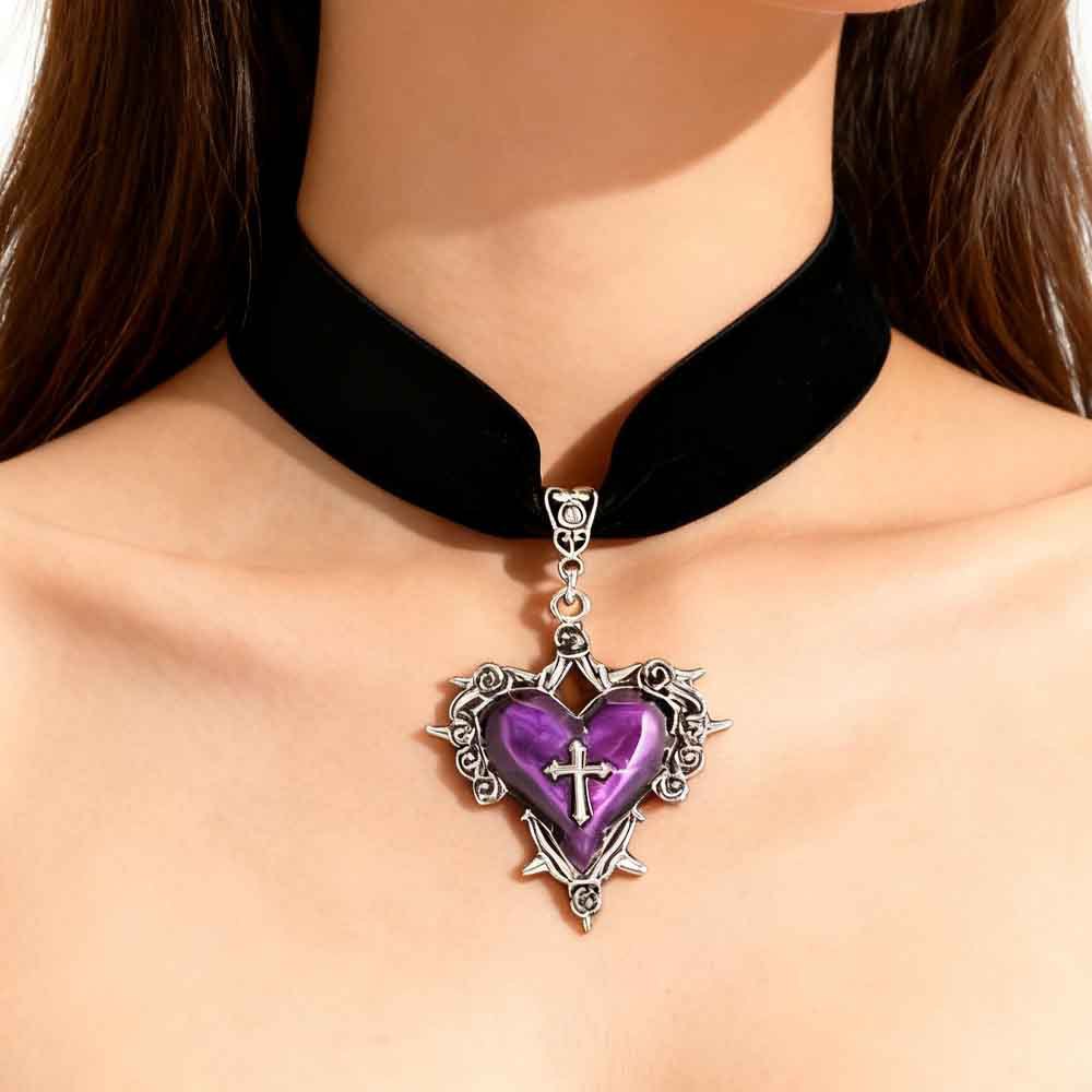 Sammet choker, Zink Alloy, med Velour, Hjärta, guldfärg pläterade, mode smycken & emalj, fler färger för val, Säljs av PC
