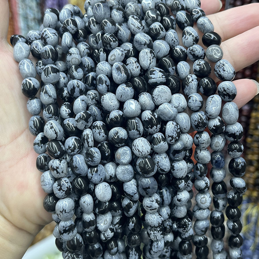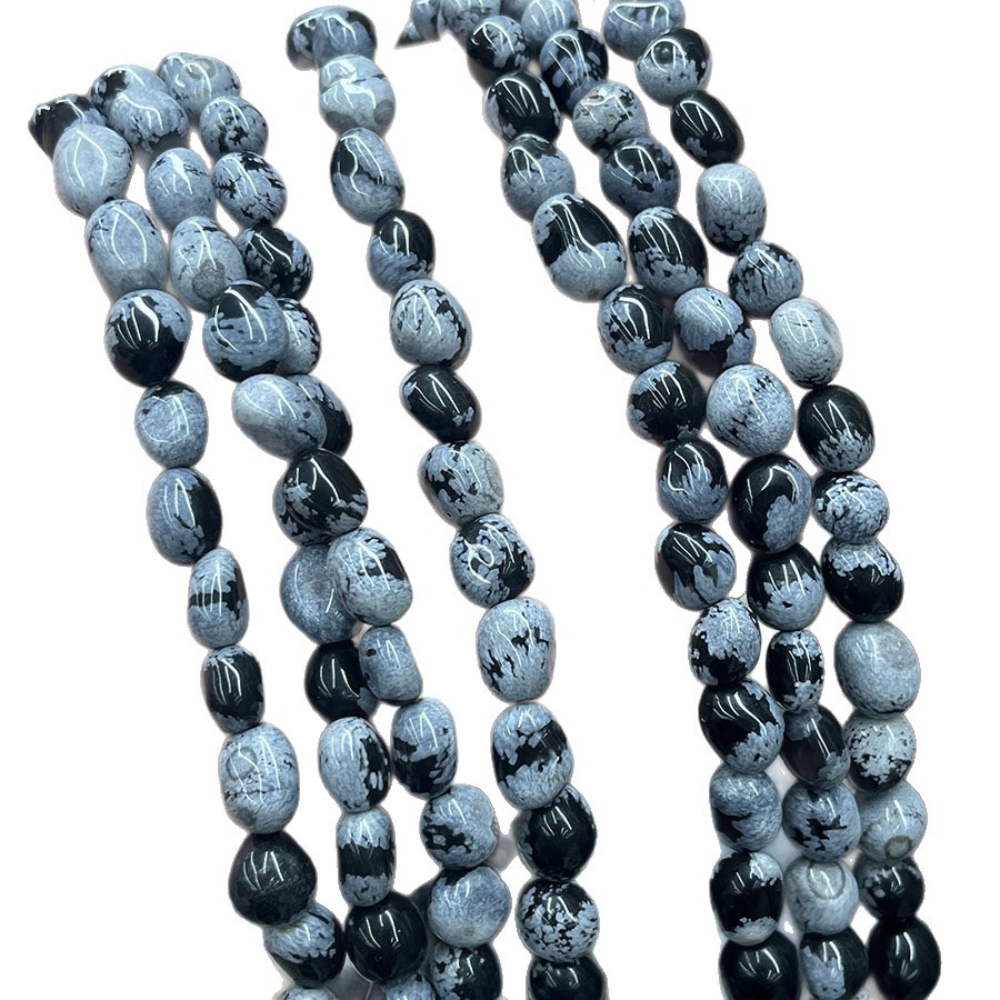 Snowflake obsidian pärlor, DIY, blandade färger, Såld Per 38 cm Strand