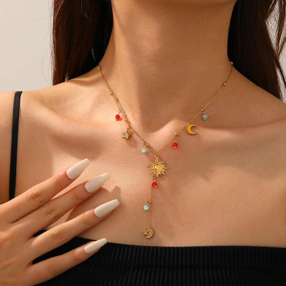 Stainless Steel smycken halsband, 304 rostfritt stål, med Glas, plated, mode smycken & för kvinna & med strass, gyllene, Säljs av PC