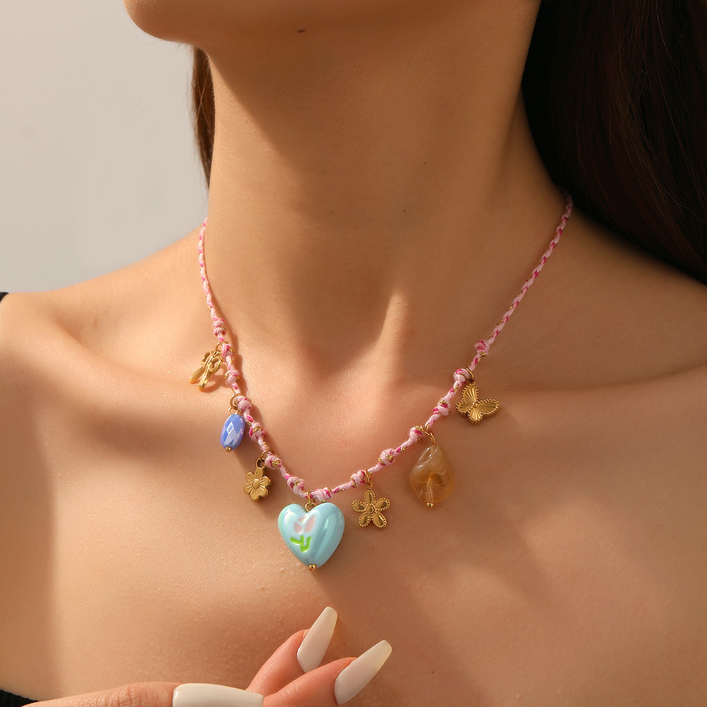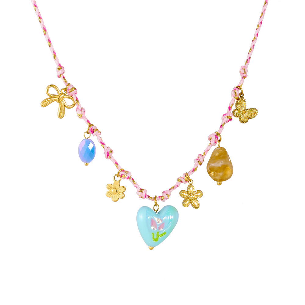 Stainless Steel smycken halsband, 304 rostfritt stål, med Bomullstråd & Harts & Akryl, guldfärg pläterade, mode smycken & för kvinna & emalj, Säljs av PC