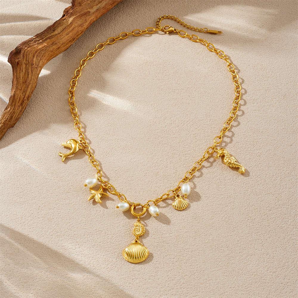 Stainless Steel smycken halsband, 304 rostfritt stål, med Plast Pearl, guldfärg pläterade, mode smycken & för kvinna, Säljs av PC