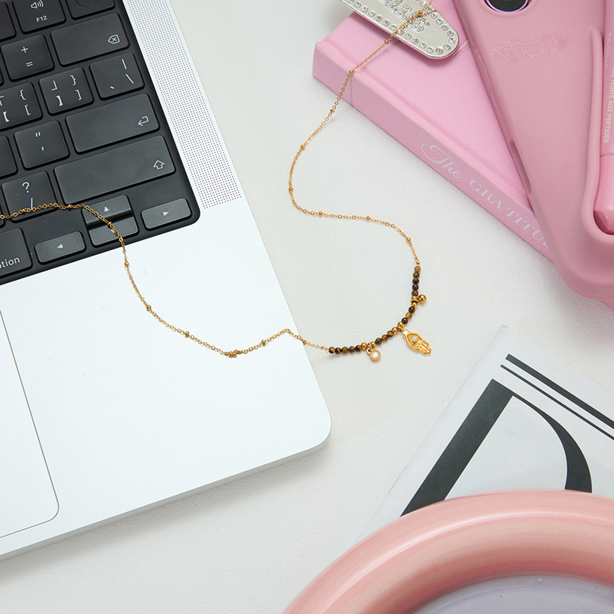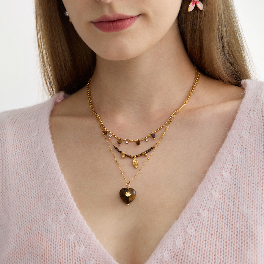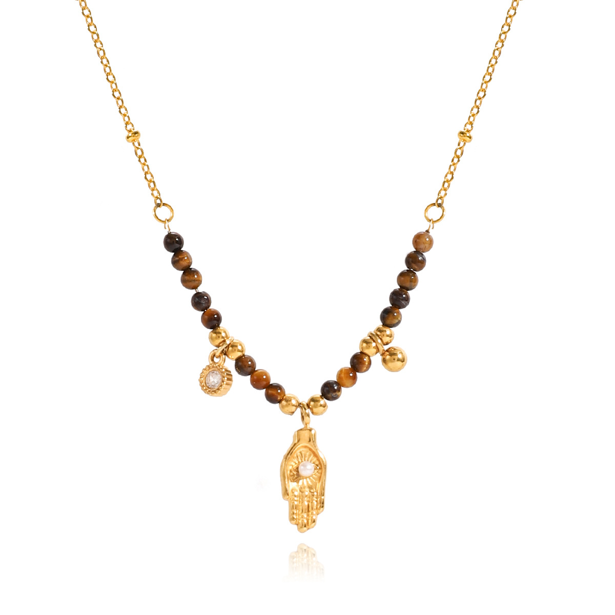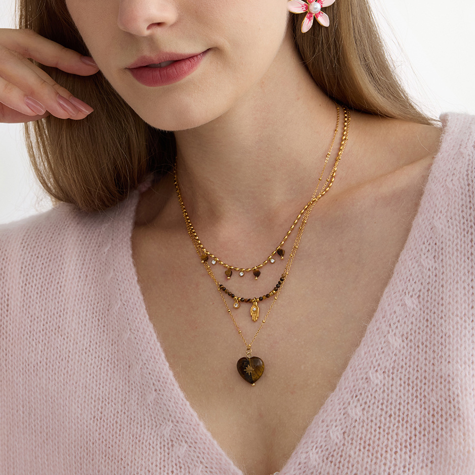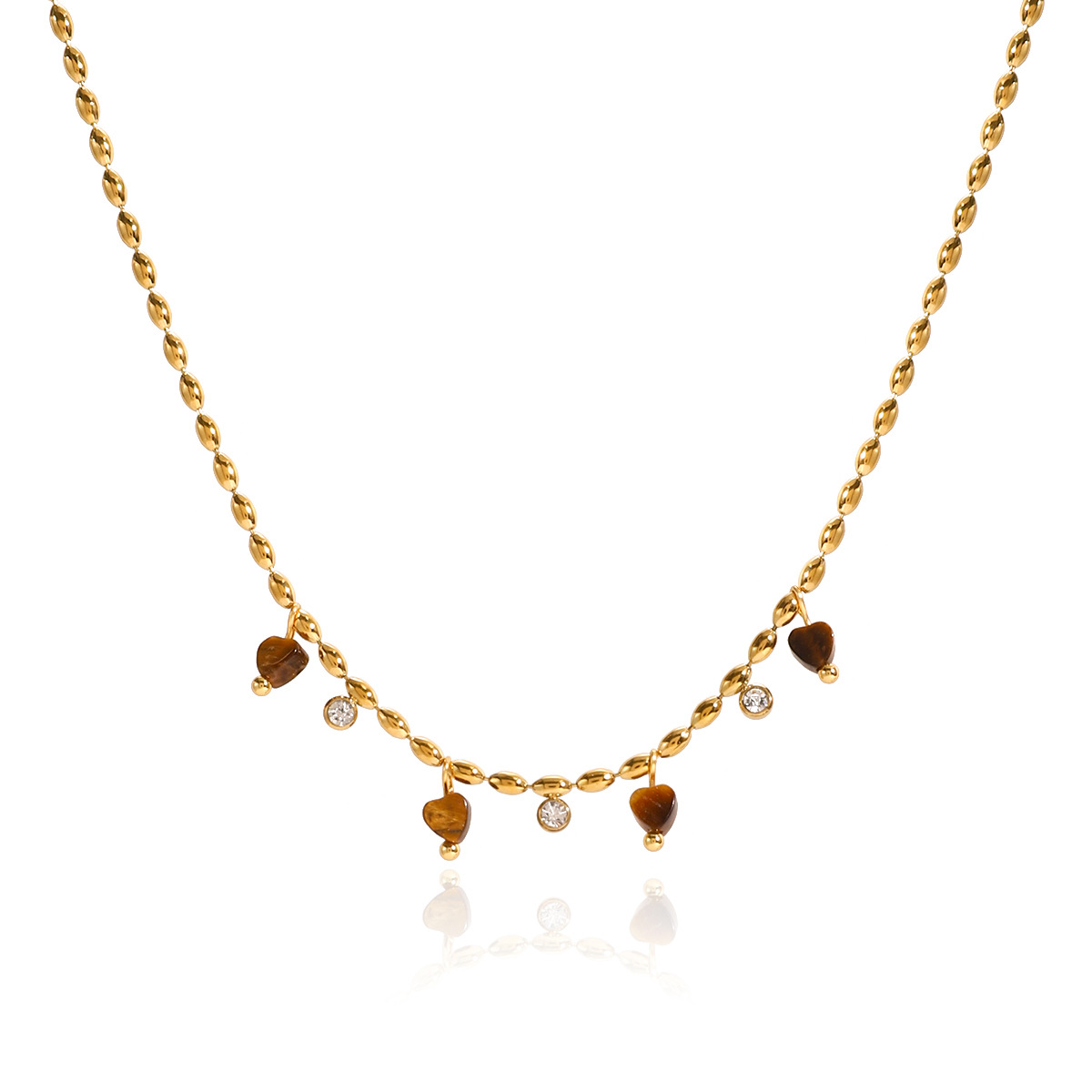 Stainless Steel smycken halsband, 304 rostfritt stål, med Tiger Eye, plated, mode smycken & olika stilar för val & för kvinna, fler färger för val, Säljs av PC