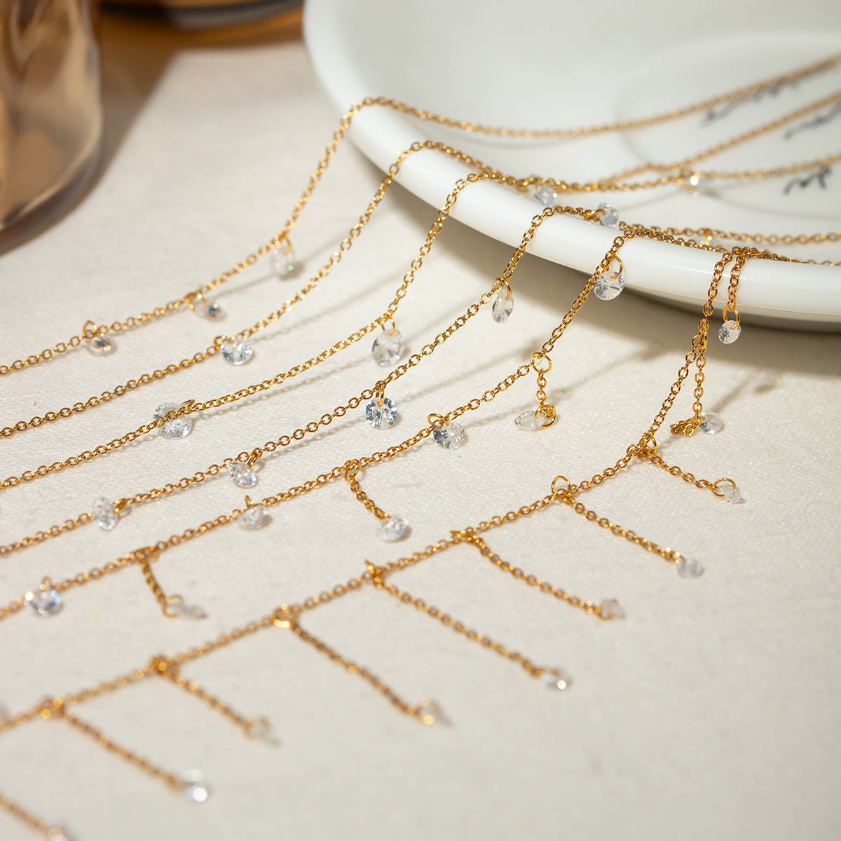 Stainless Steel smycken halsband, 304 rostfritt stål, med Cubic Zirconia, för kvinna, fler färger för val, Längd 41-50 cm, Säljs av PC