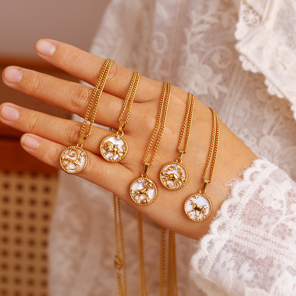 Stainless Steel smycken halsband, 304 rostfritt stål, 12 Tecken på Zodiac, plated, mode smycken & med strass, fler färger för val, Säljs av PC