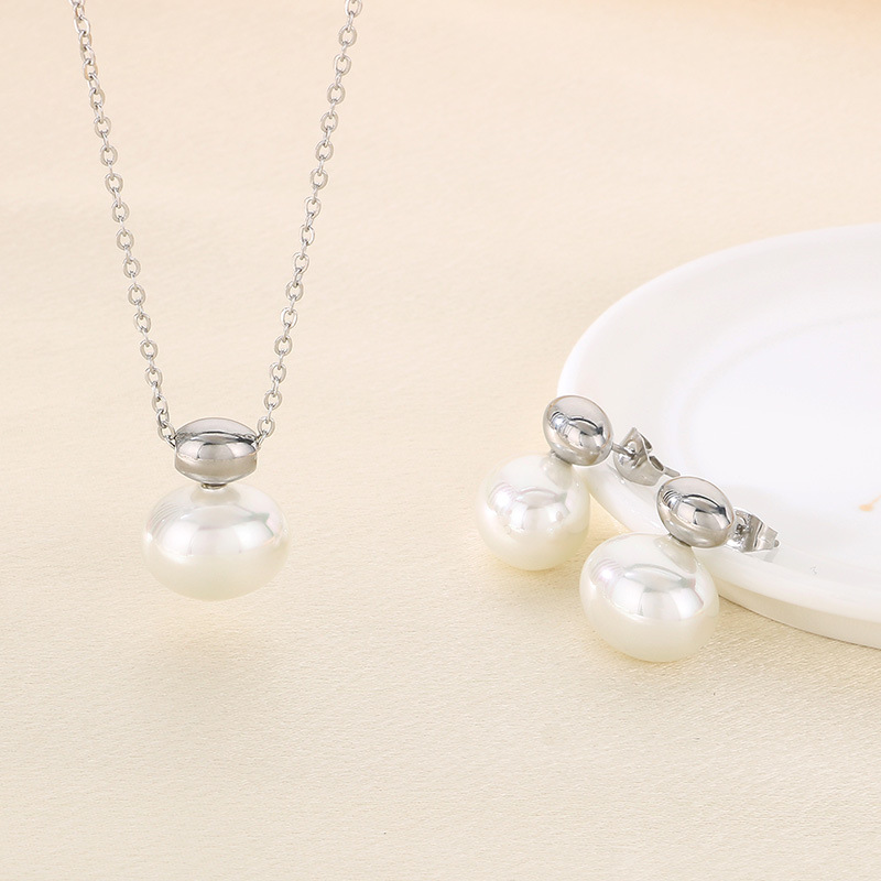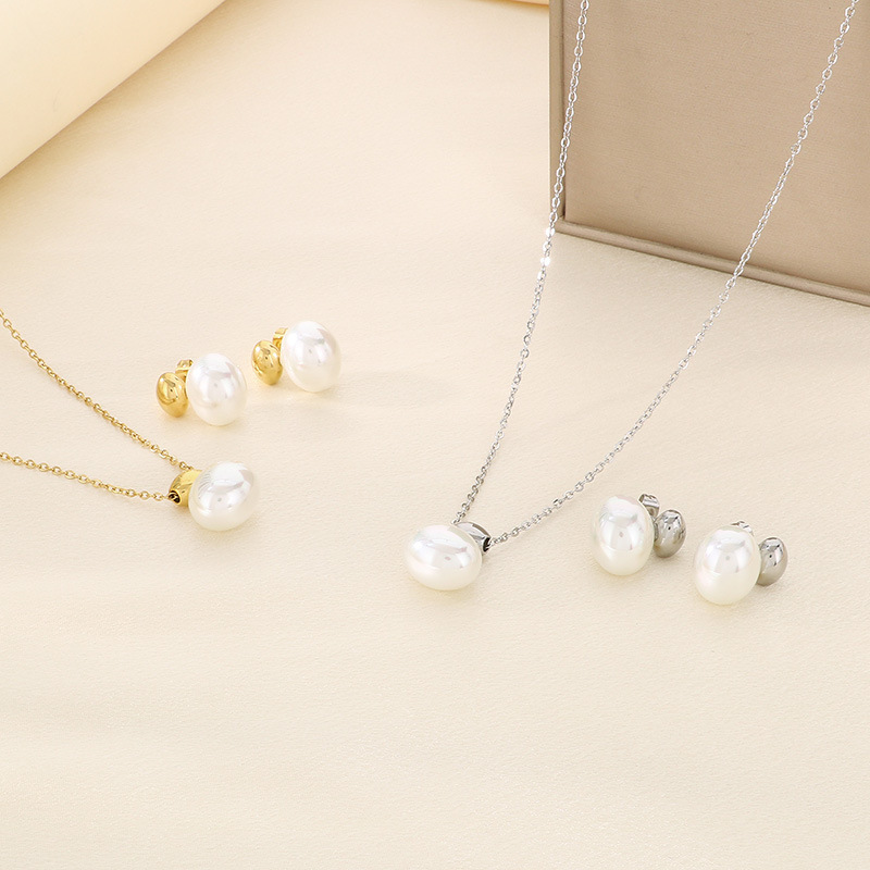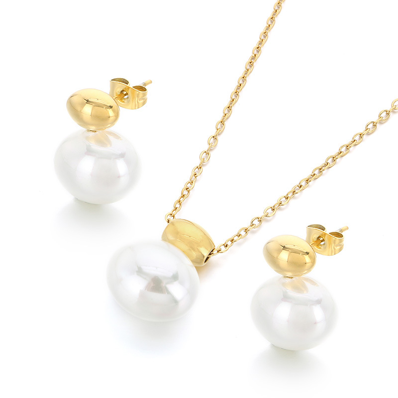 Sydhavsskal smycken uppsättningar, Stud Örhänge & halsband, 304 rostfritt stål, med Shell Pearl, guldfärg pläterade, mode smycken, fler färger för val, Säljs av PC