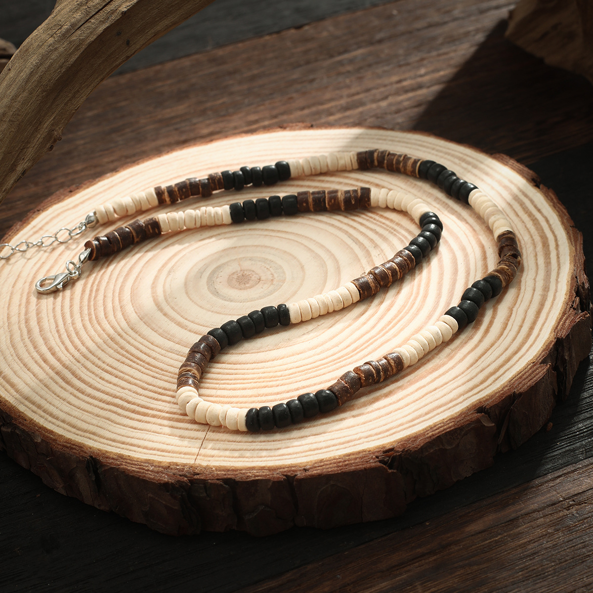 Trä Halsband, med Coco, med 2.7inch extender kedja, Bohemiska stilen & för människan, Längd Ca 17.7 inch, Säljs av PC