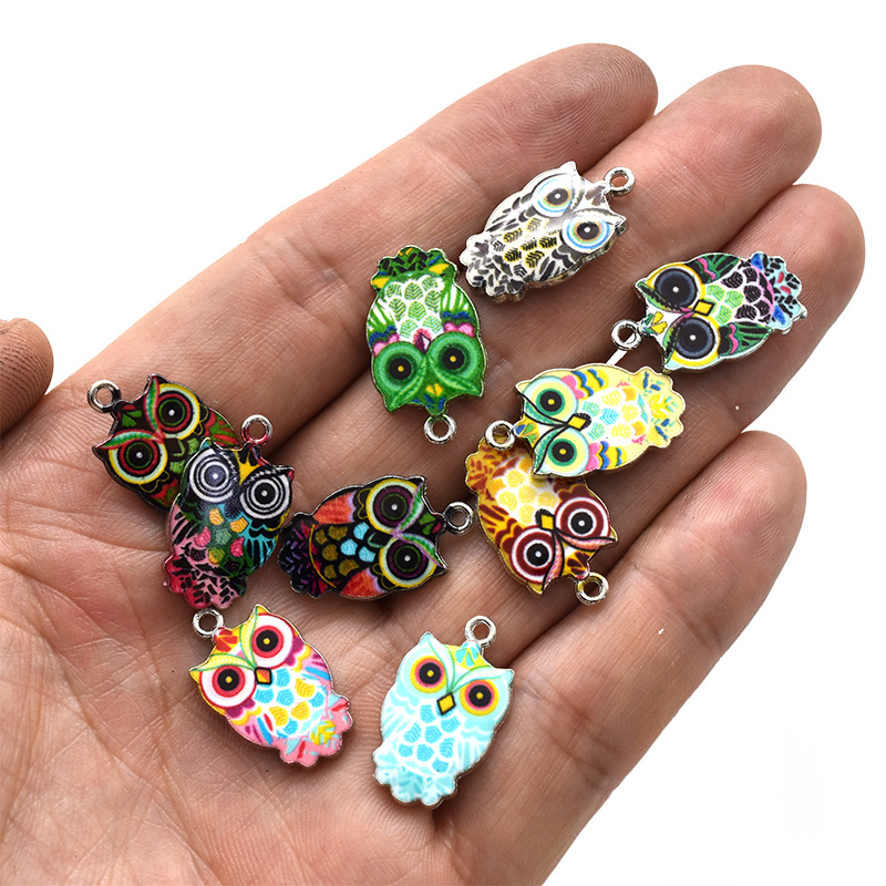 Zink legering emalj hängen, Zink Alloy, Owl, plated, slumpmässigt skickade & DIY, 23x13mm, 50PC/Bag, Säljs av Bag