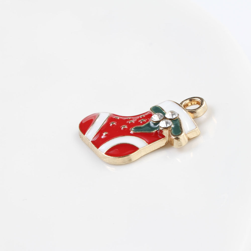 Zink Alloy Christmas Hängen, Christmas Sock, guldfärg pläterade, DIY & emalj & med strass, blandade färger, 18x17x2.80mm, Säljs av PC