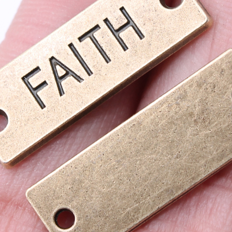 Zink Alloy Connector, Rektangel, antik brons färg klädd, DIY & med bokstaven mönster, 28x10mm, Säljs av PC