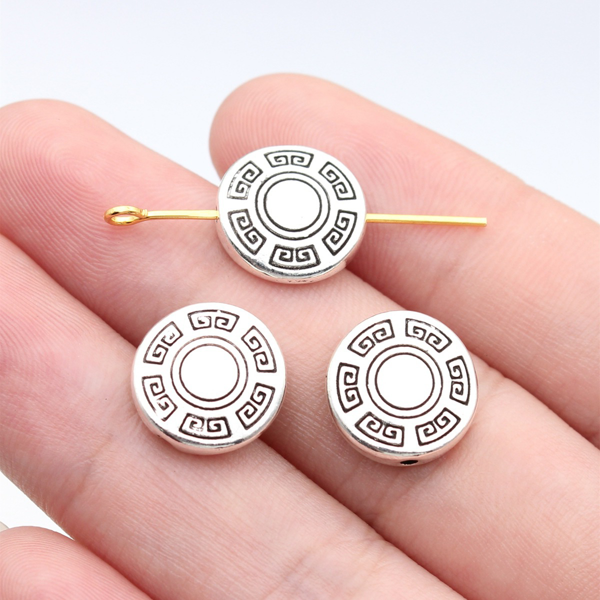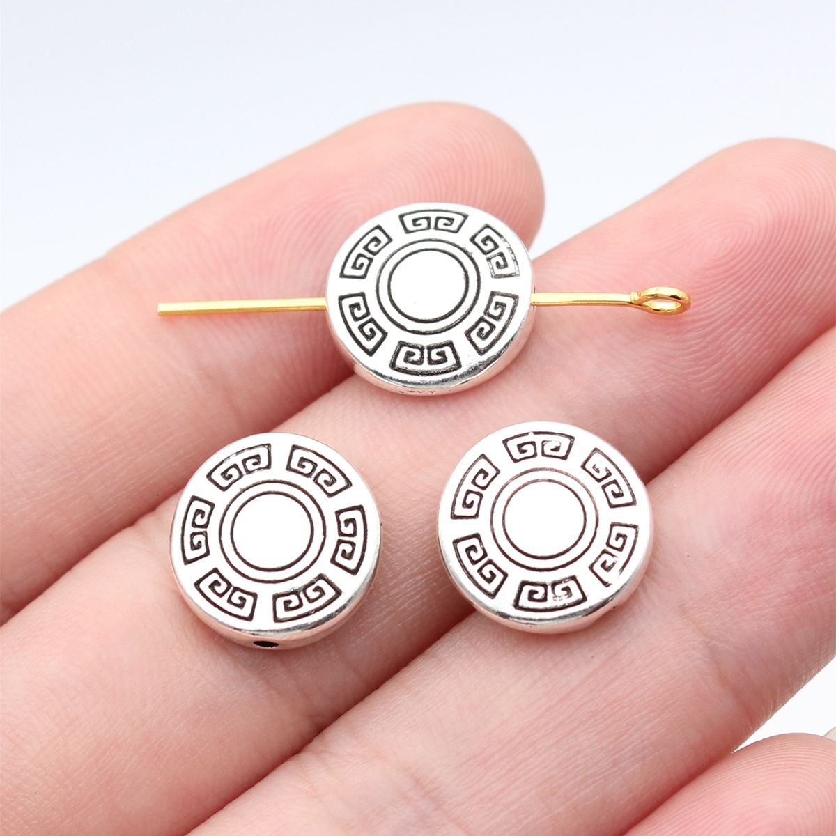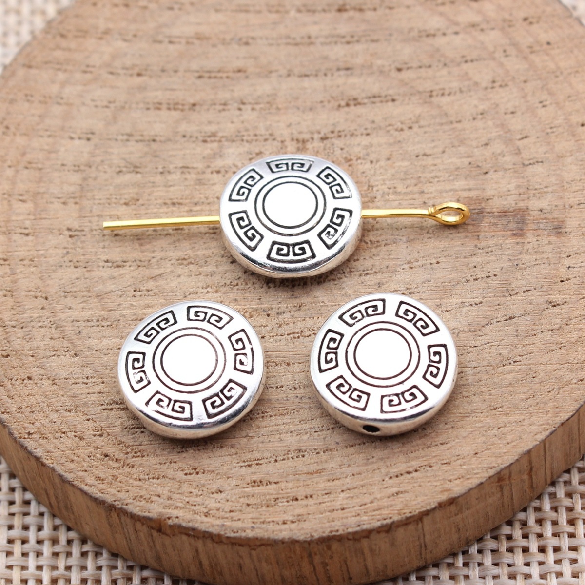Zink Alloy Flat Pärlor, Rund, plated, DIY, antik brons färg, 13x13x4mm, Säljs av PC